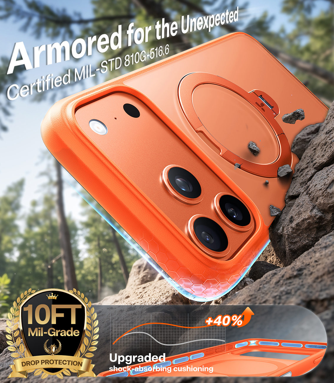 كفر Torras Ostand Spin لايفون 17 برو / يدعم MagSafe / مع مسكة مدمجة / ضد الطيحات / برتقالي