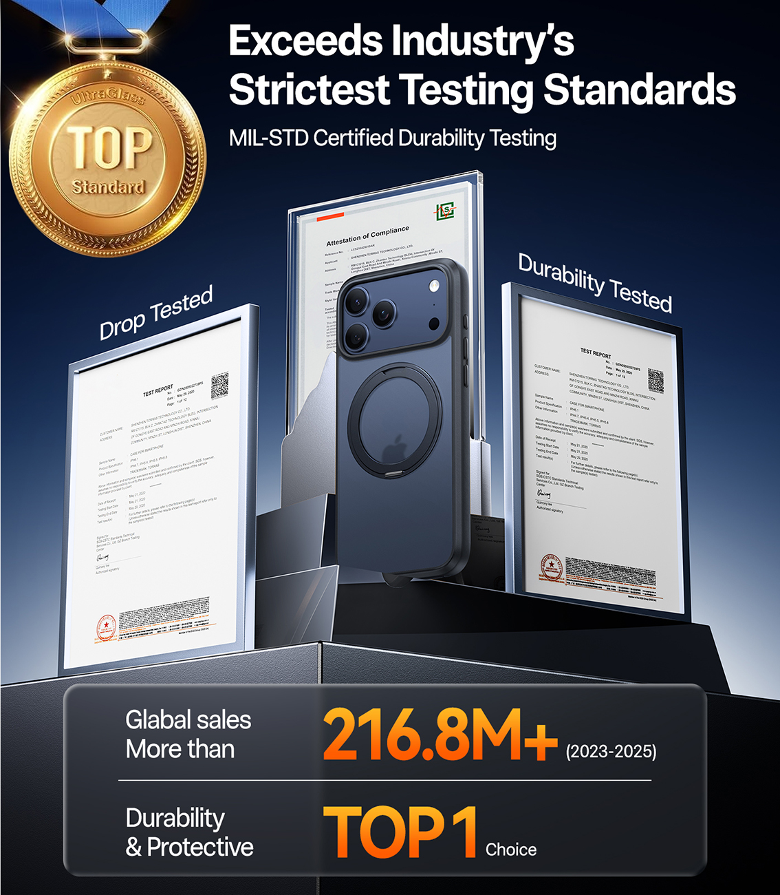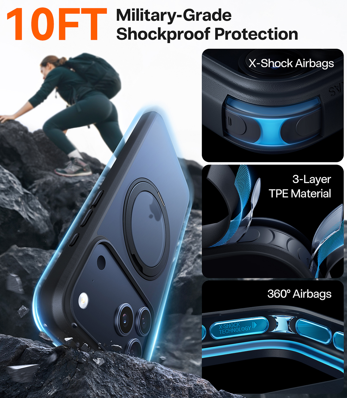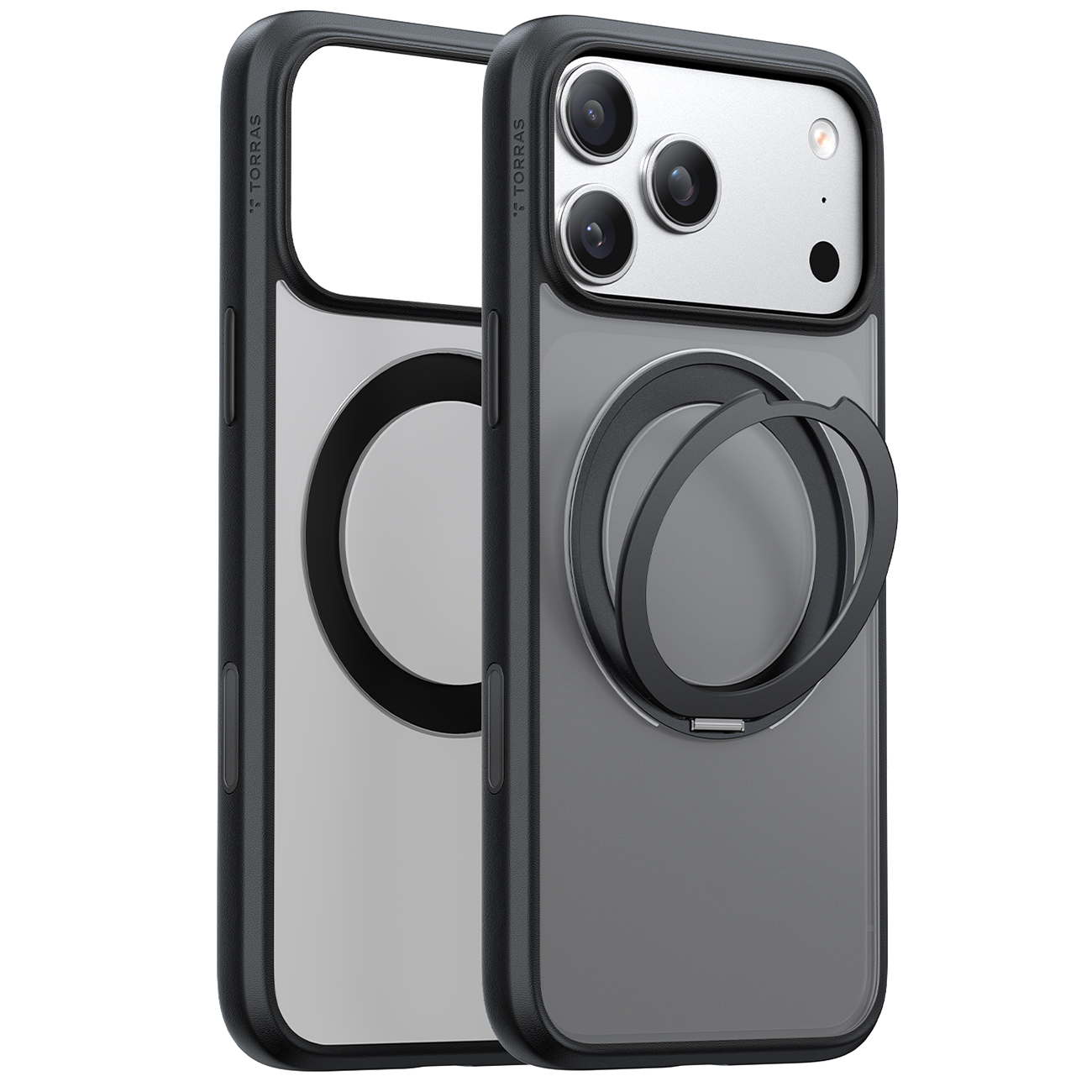 كفر Torras Ostand لايفون 17 برو / يدعم MagSafe / مع مسكة مدمجة / ضد الطيحات / لون Shadow Black