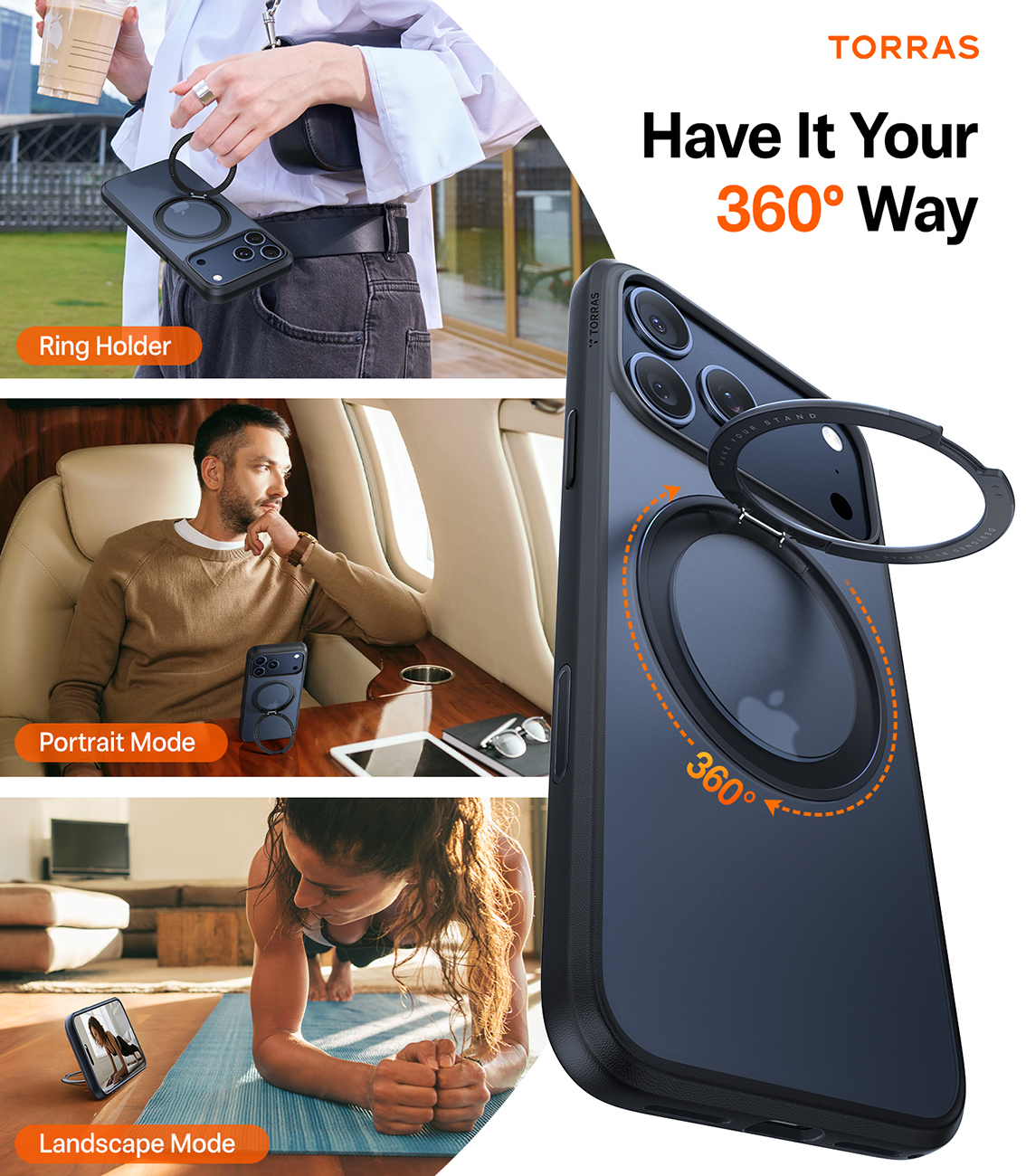كفر Torras Ostand Pro لايفون 17 برو ماكس / يدعم MagSafe / مع مسكة مدمجة / ضد الطيحات / اسود
