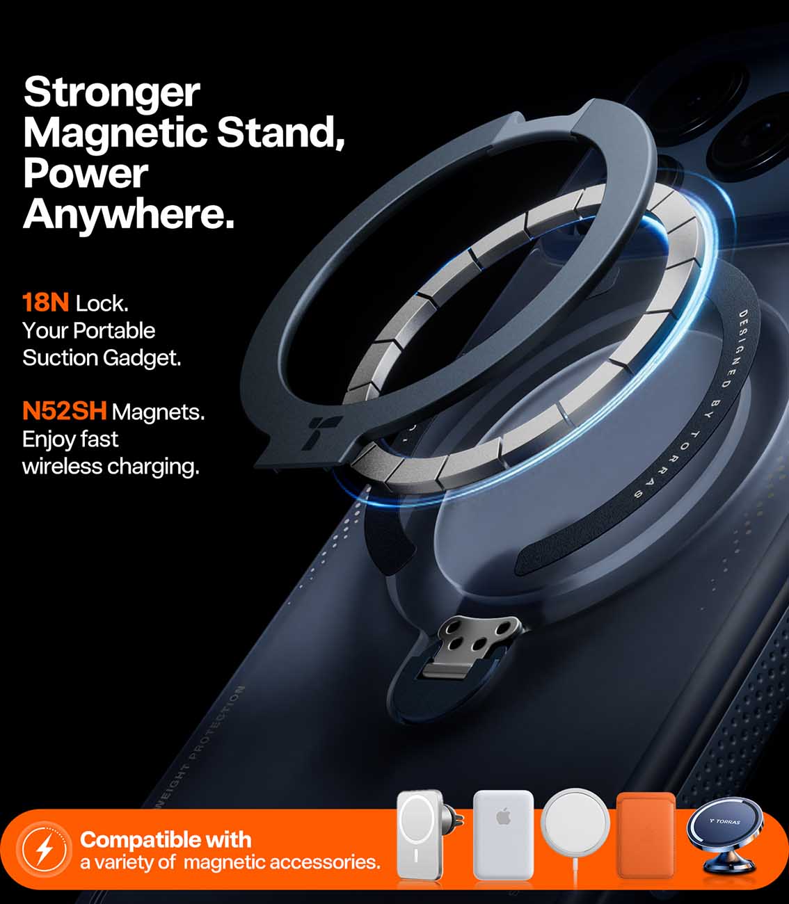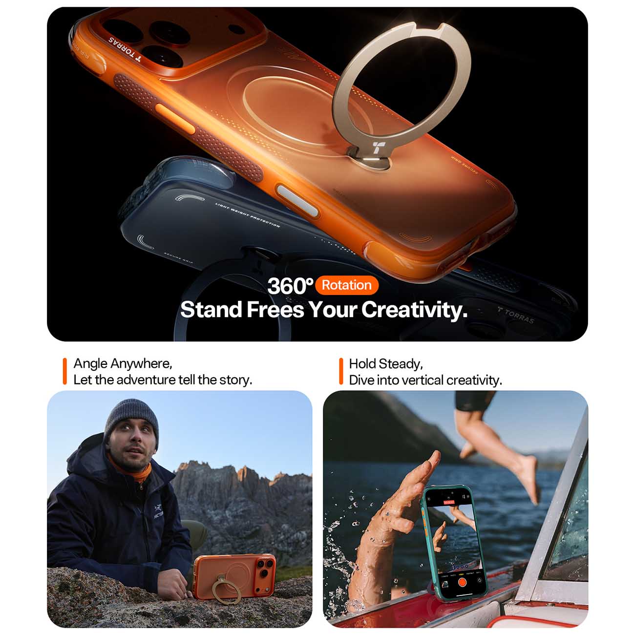 كفر Torras Ostand Spin لايفون 17 برو / يدعم MagSafe / مع مسكة مدمجة / ضد الطيحات / برتقالي