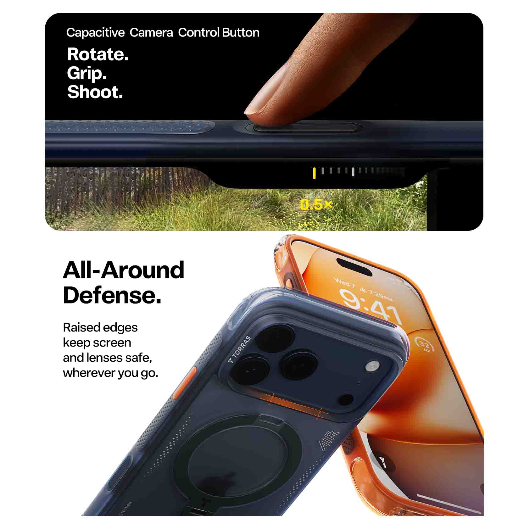 كفر Torras لايفون 17 برو / يدعم MagSafe / مع مسكة مدمجة / ضد الطيحات / اسود