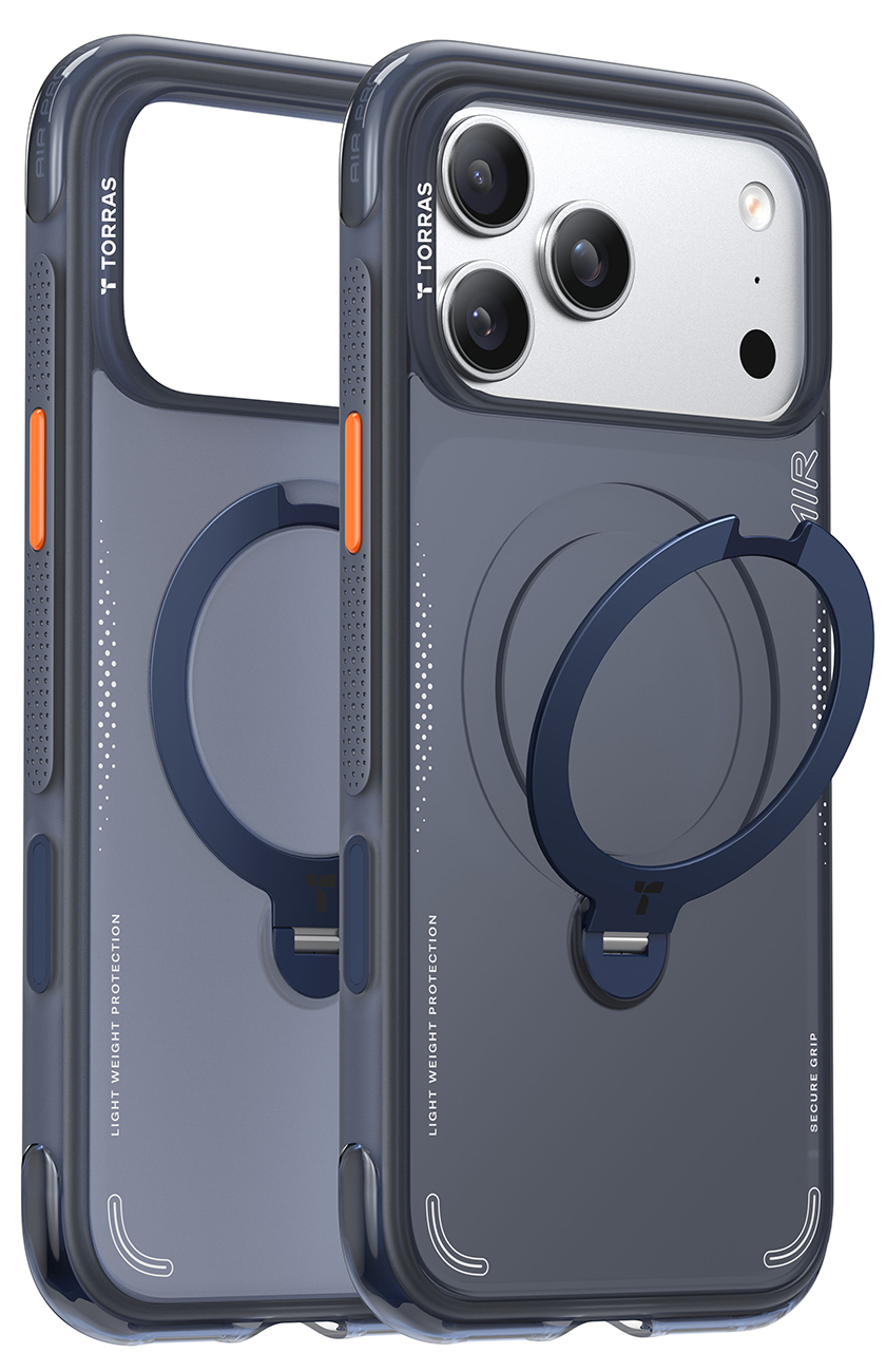 كفر Torras Ostand Spin لايفون 17 برو / يدعم MagSafe / مع مسكة مدمجة / ضد الطيحات / ازرق