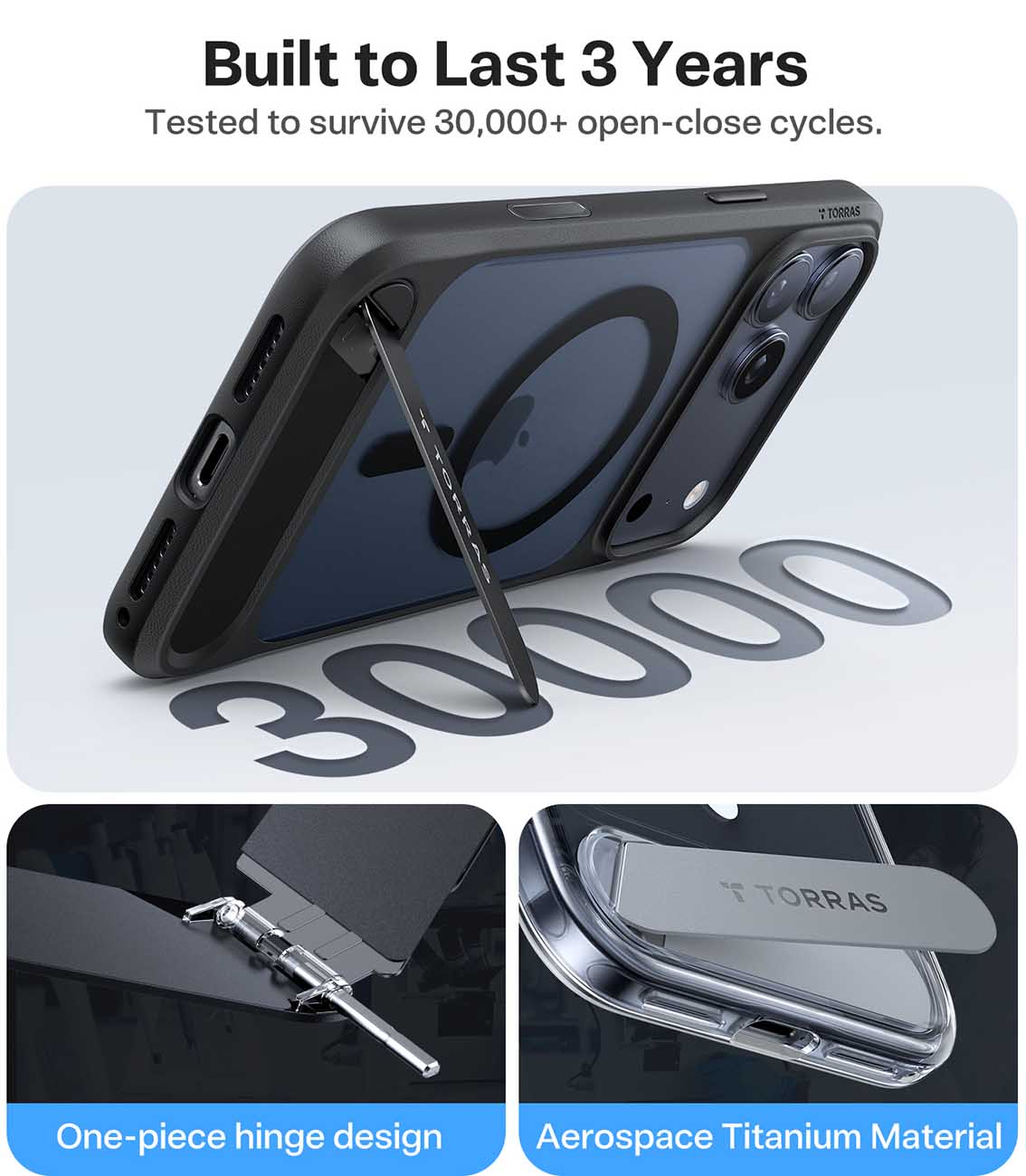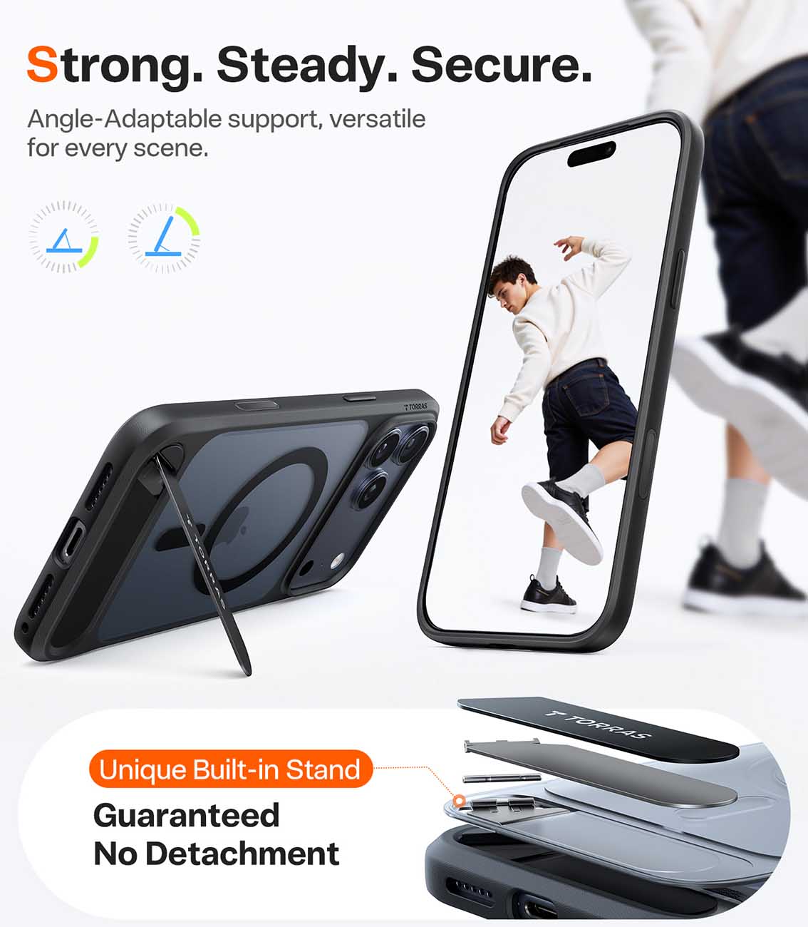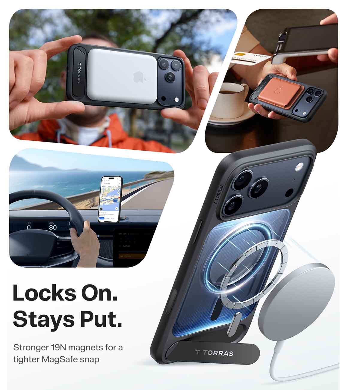 كفر Torras Pstand لايفون 17 برو / يدعم MagSafe / مع ستاند مدمج / ضد الطيحات / اسود