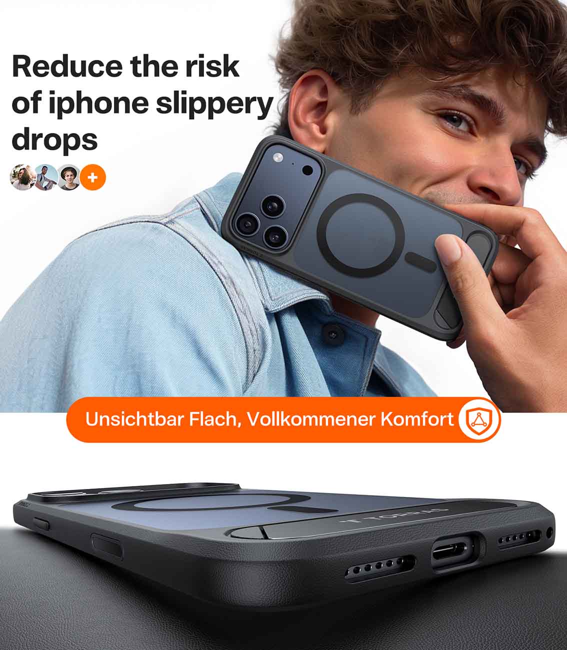 كفر Torras Ostand Pro لايفون 17 برو ماكس / يدعم MagSafe / مع مسكة مدمجة / ضد الطيحات / برتقالي