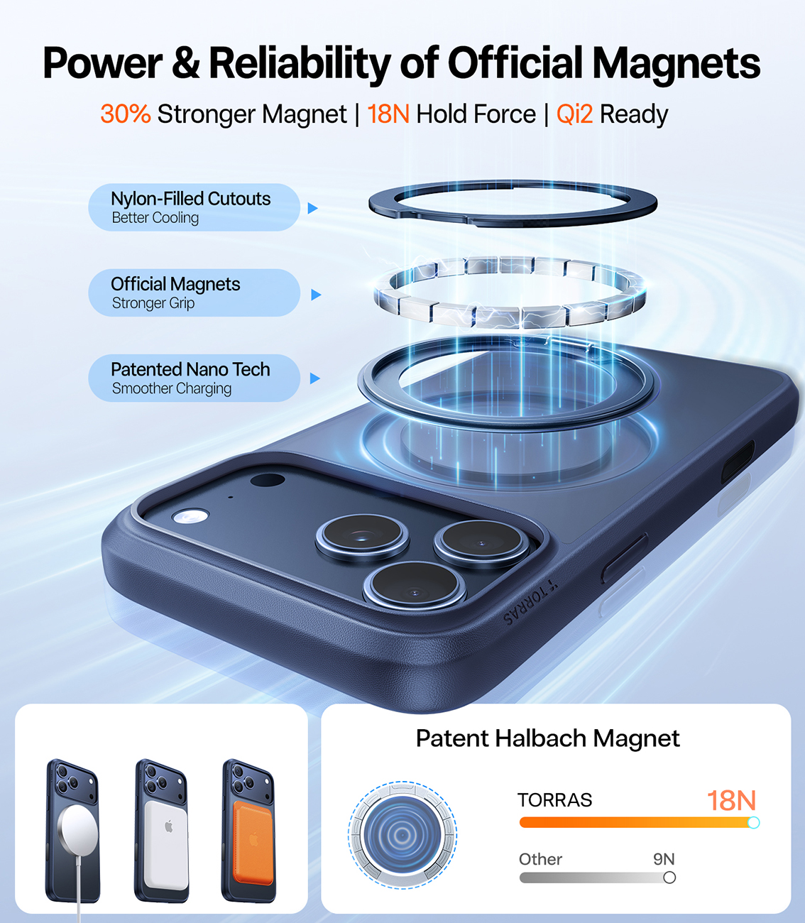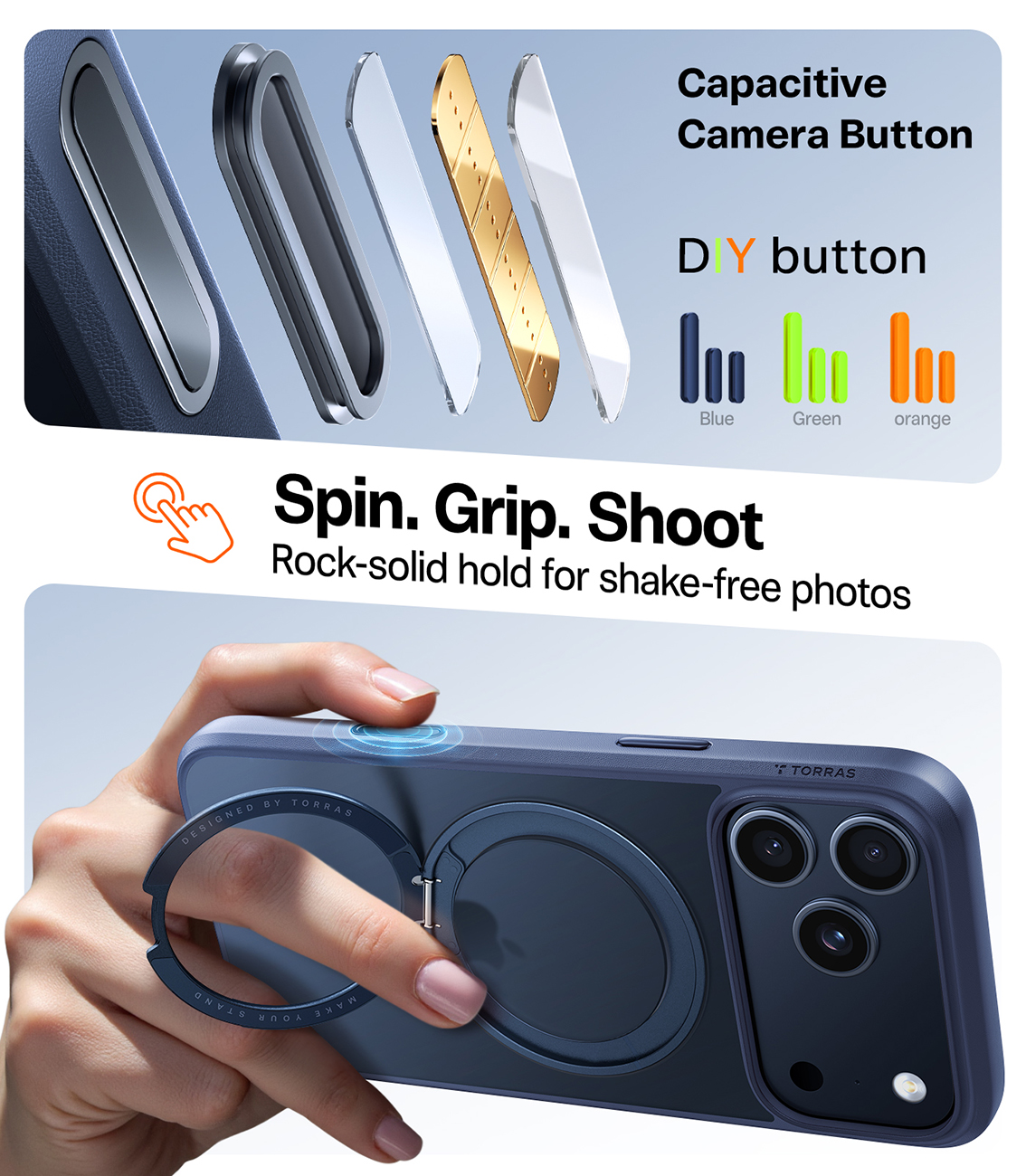 كفر Torras Ostand Spin لايفون 17 برو / يدعم MagSafe / مع مسكة مدمجة / ضد الطيحات / ازرق