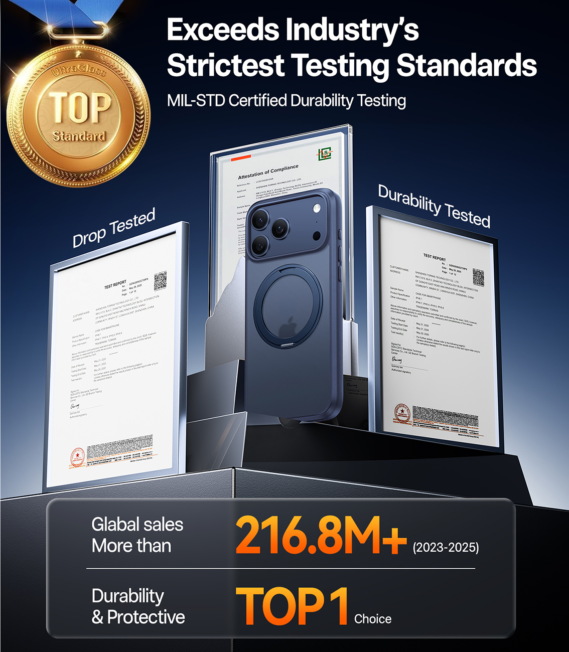 كفر Torras Ostand لايفون 17 برو / يدعم MagSafe / مع مسكة مدمجة / ضد الطيحات / لون Midnight Blue