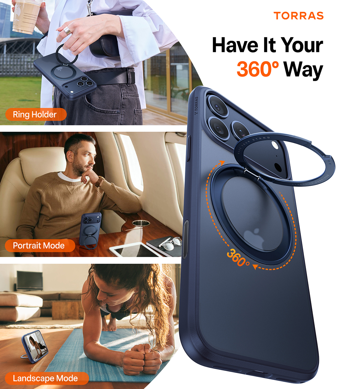 كفر Torras Ostand Spin لايفون 17 برو / يدعم MagSafe / مع مسكة مدمجة / ضد الطيحات / برتقالي