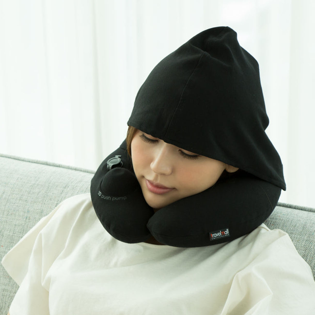 المميز في هذي المخدة ان فيها هودي مدمج .. يحجب الضوء عن عينك ويساعدك على النوم.