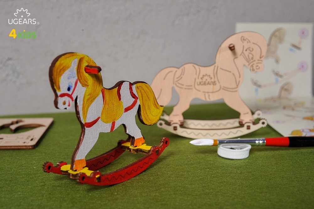 طفلك مهتم بالعاب التركيب ؟ وفرنا لكم هذي اللعبة الممتعة من شركة Ugears .. عبارة عن لعبة تركيب بتصميم 3D على شكل Rocking Horse.