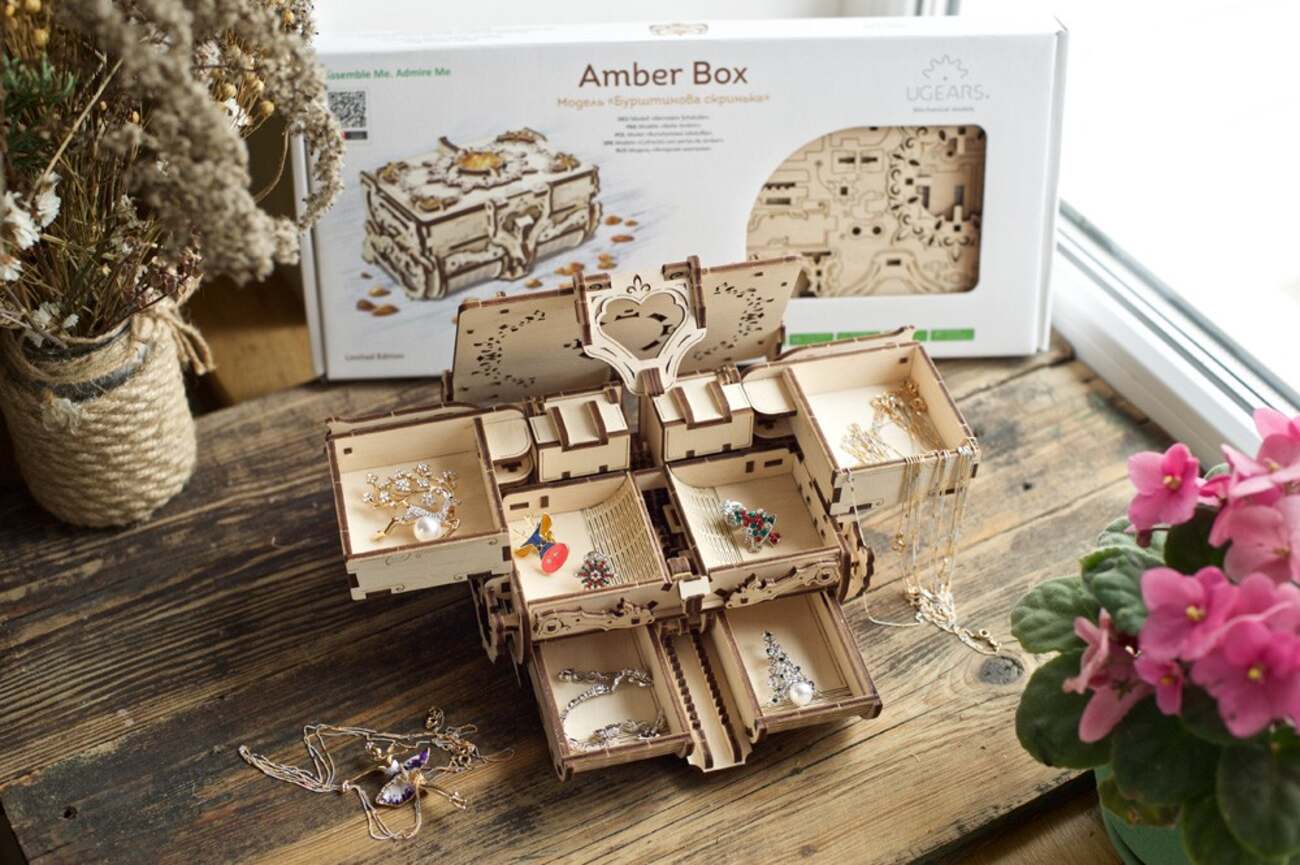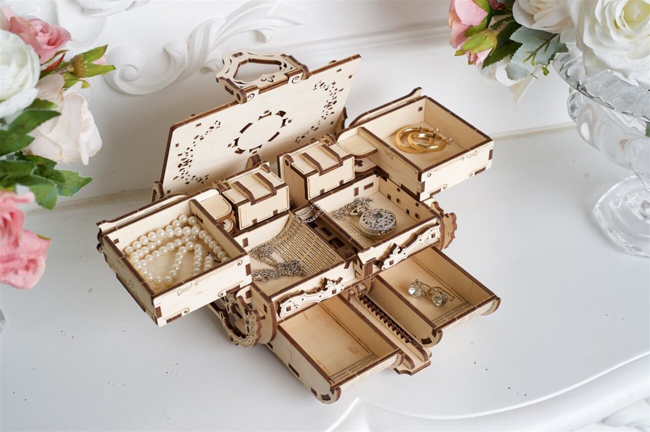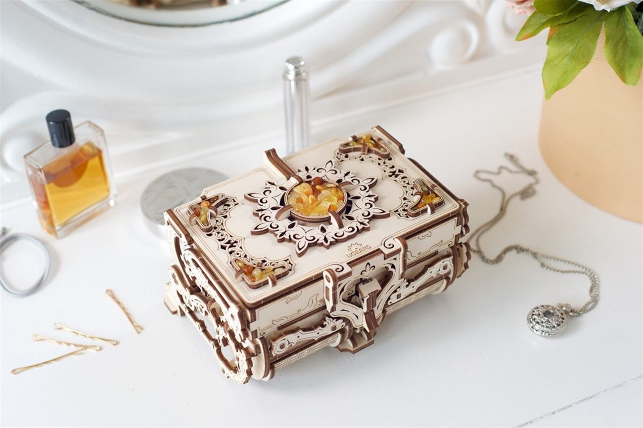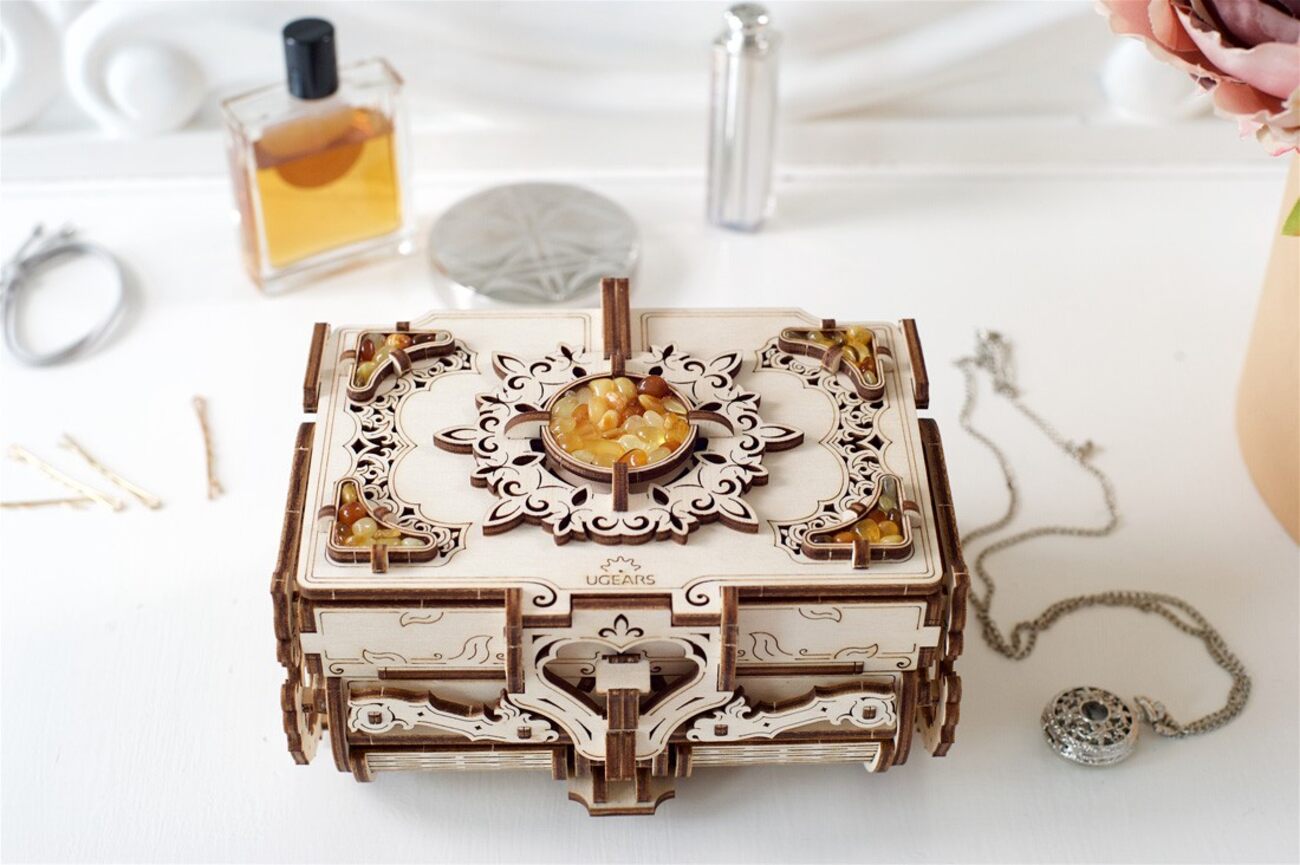 مهتم بالعاب الJigsaw والتركيب ؟ وفرنا لكم هذي اللعبة الممتعة من شركة Ugears .. عبارة عن لعبة تركيب ميكانيكية بتصميم 3D على شكل صندوق مجوهرات.