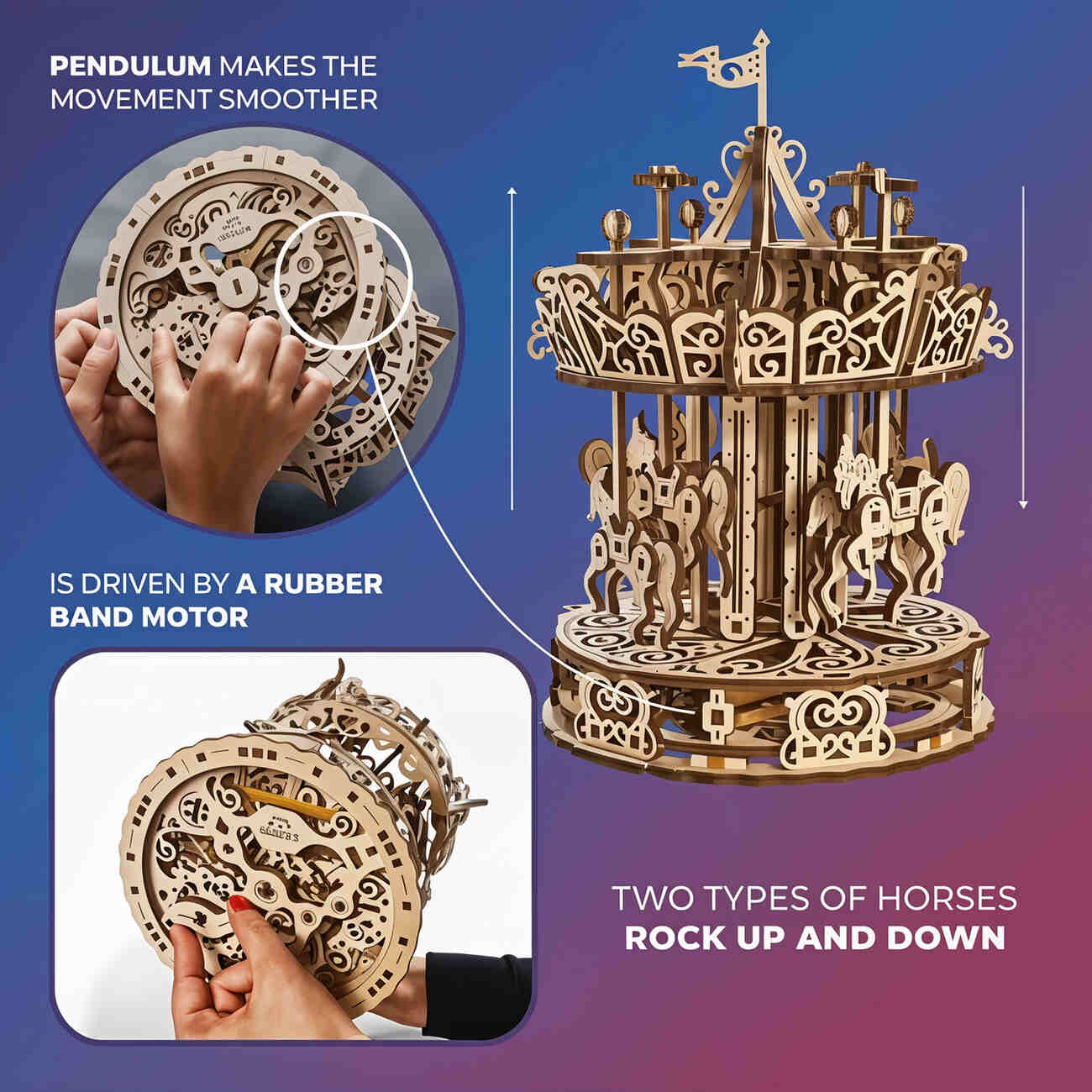 مهتم بالعاب الJigsaw والتركيب ؟ وفرنا لكم هذي اللعبة الممتعة من شركة Ugears .. عبارة عن لعبة تركيب ميكانيكية بتصميم 3D على شكل Carousel.
