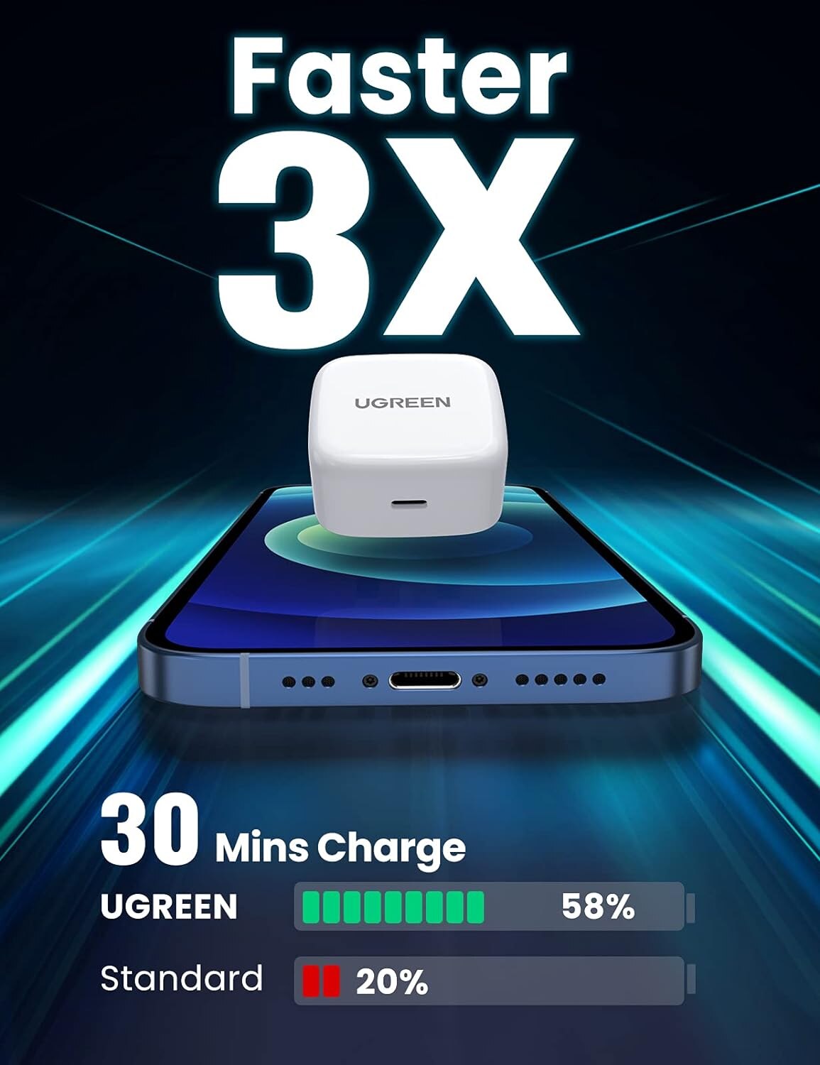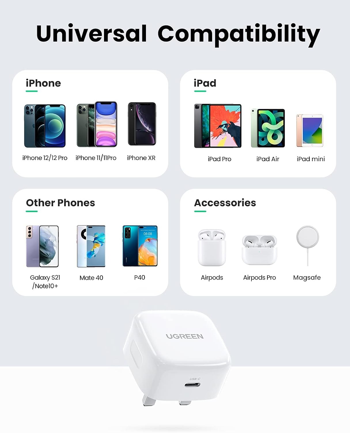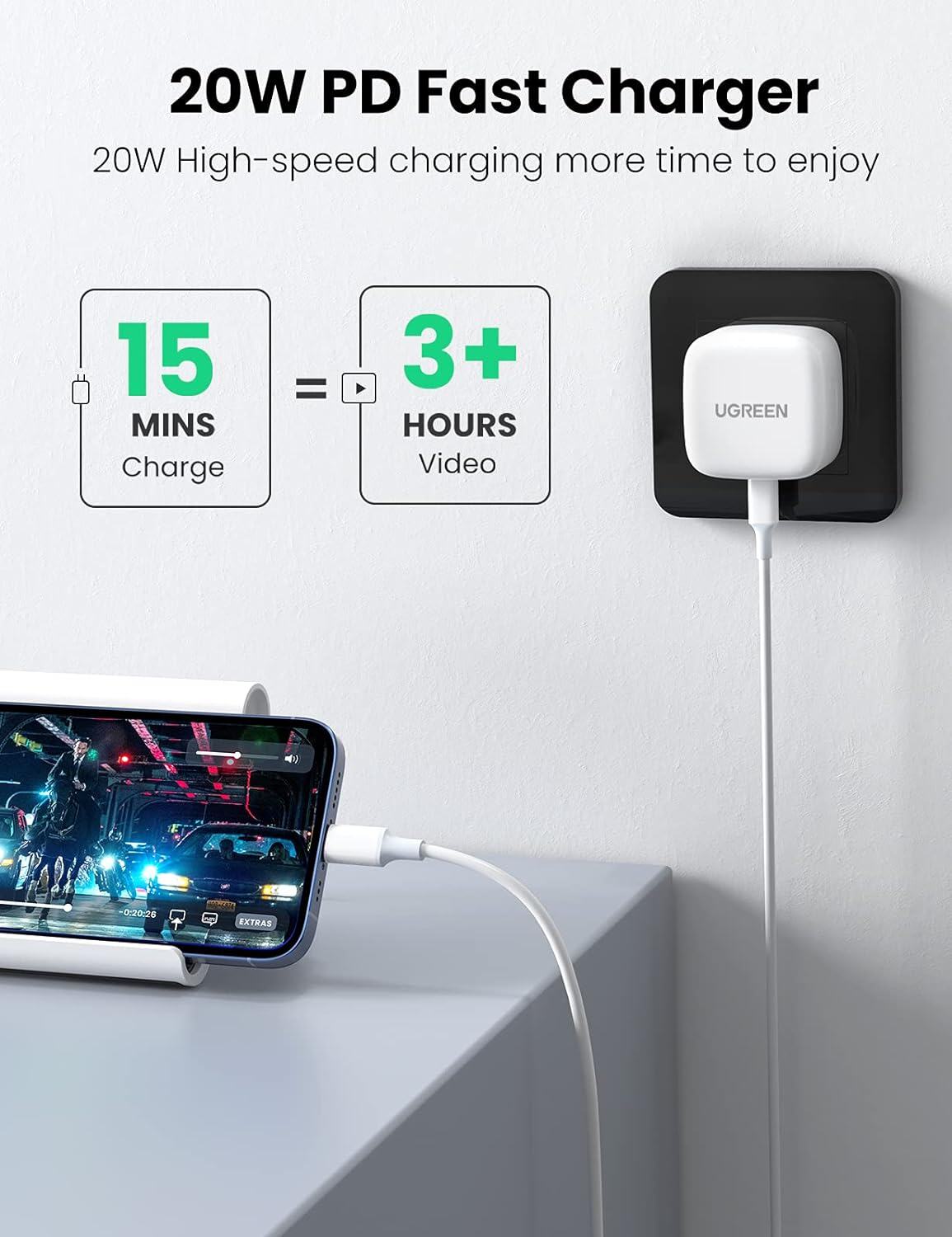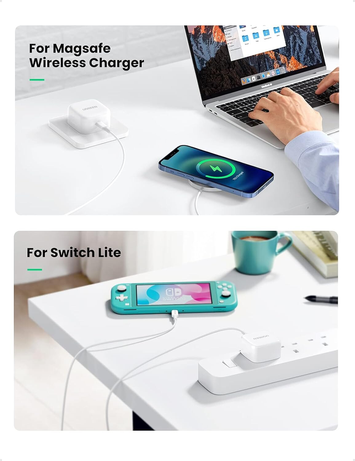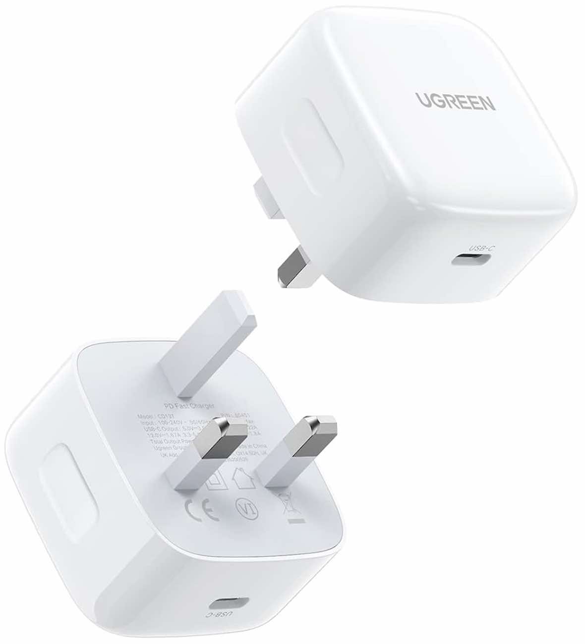 بلك UGreen نوع تايب سي قوة 20 واط / يدعم تقنية PD للشحن السريع / ابيض