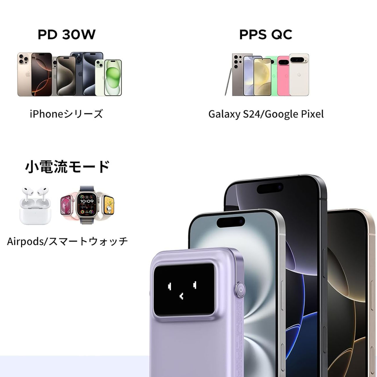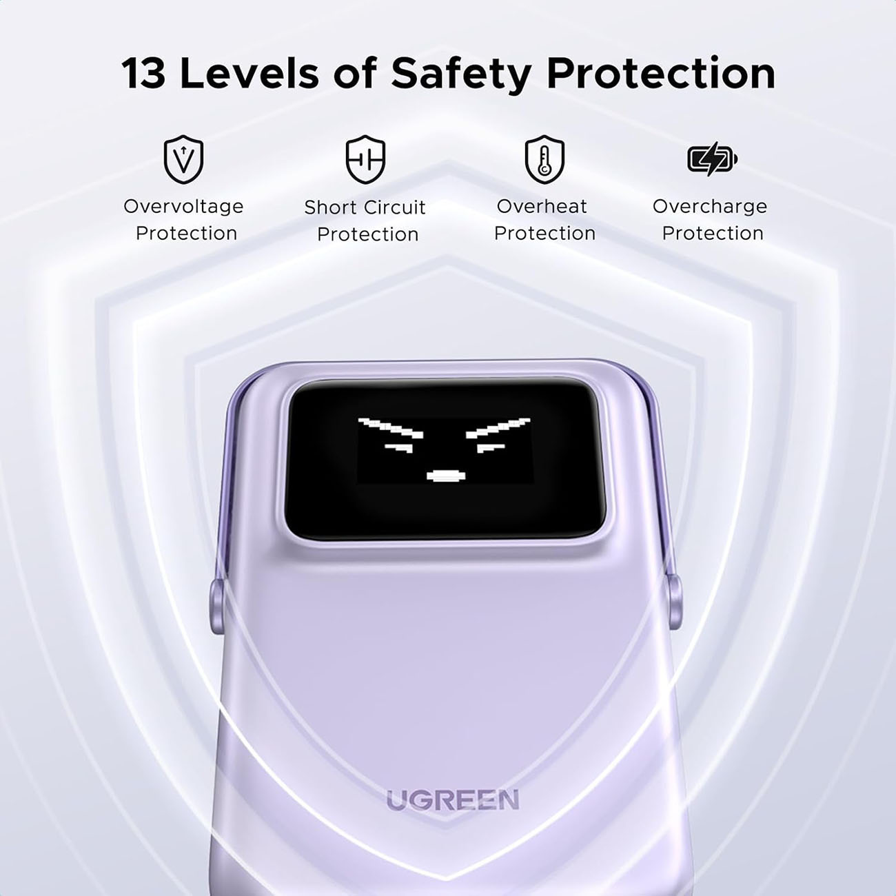 فيها مؤشر LED يوضح لك مستوى وحالة الشحن عن طريق 15 ايموجي لطيف يظهر على شاشة البطارية.