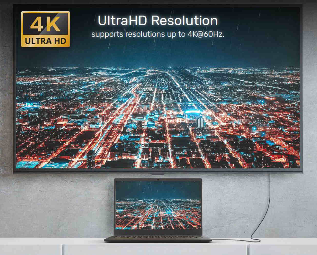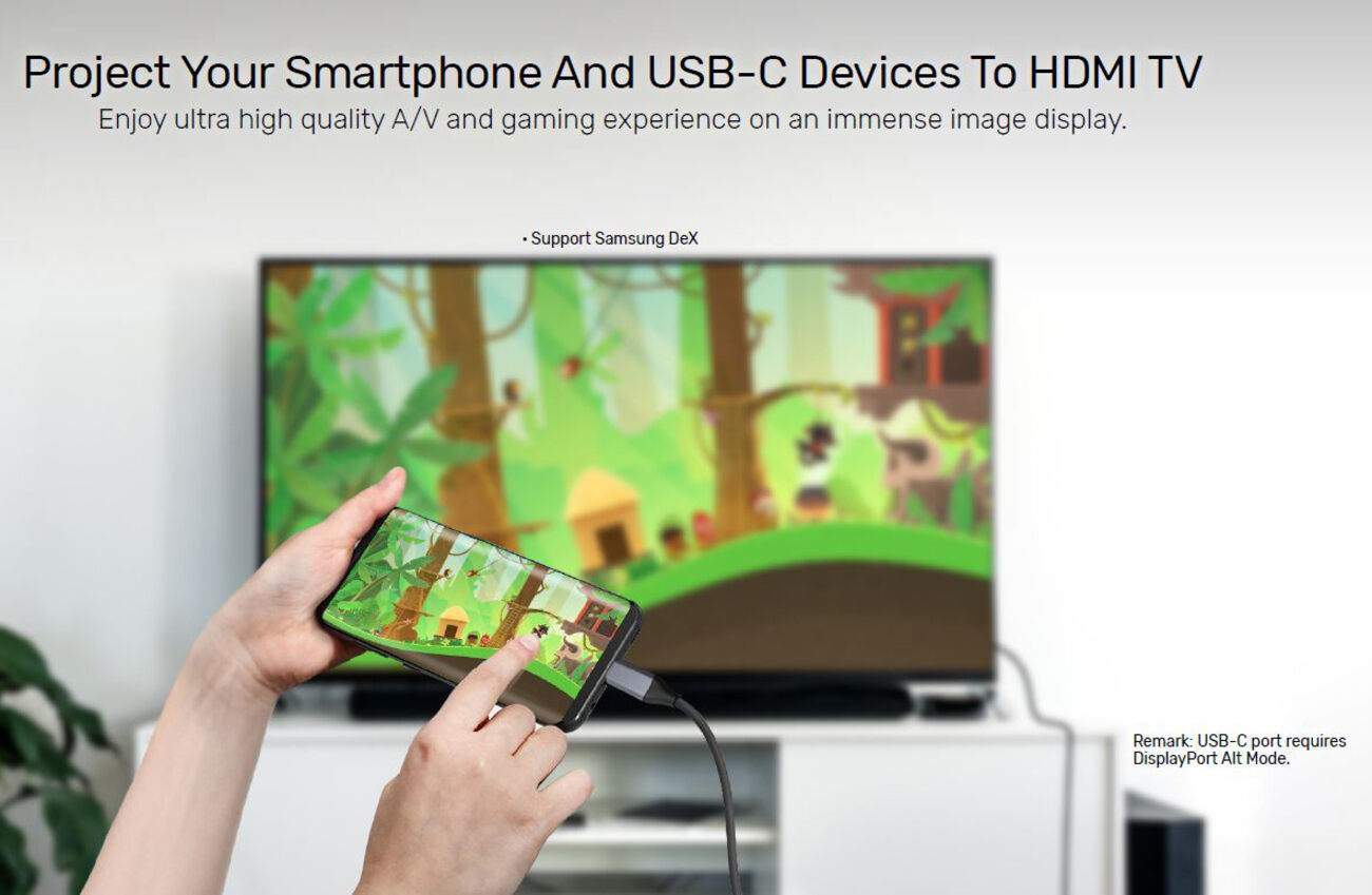 يسمح بسهولة بعرض جوالك وأجهزة USB-C الاخرى على تلفزيون HDMI لتجربة صوت وصورة عالية الجودة.