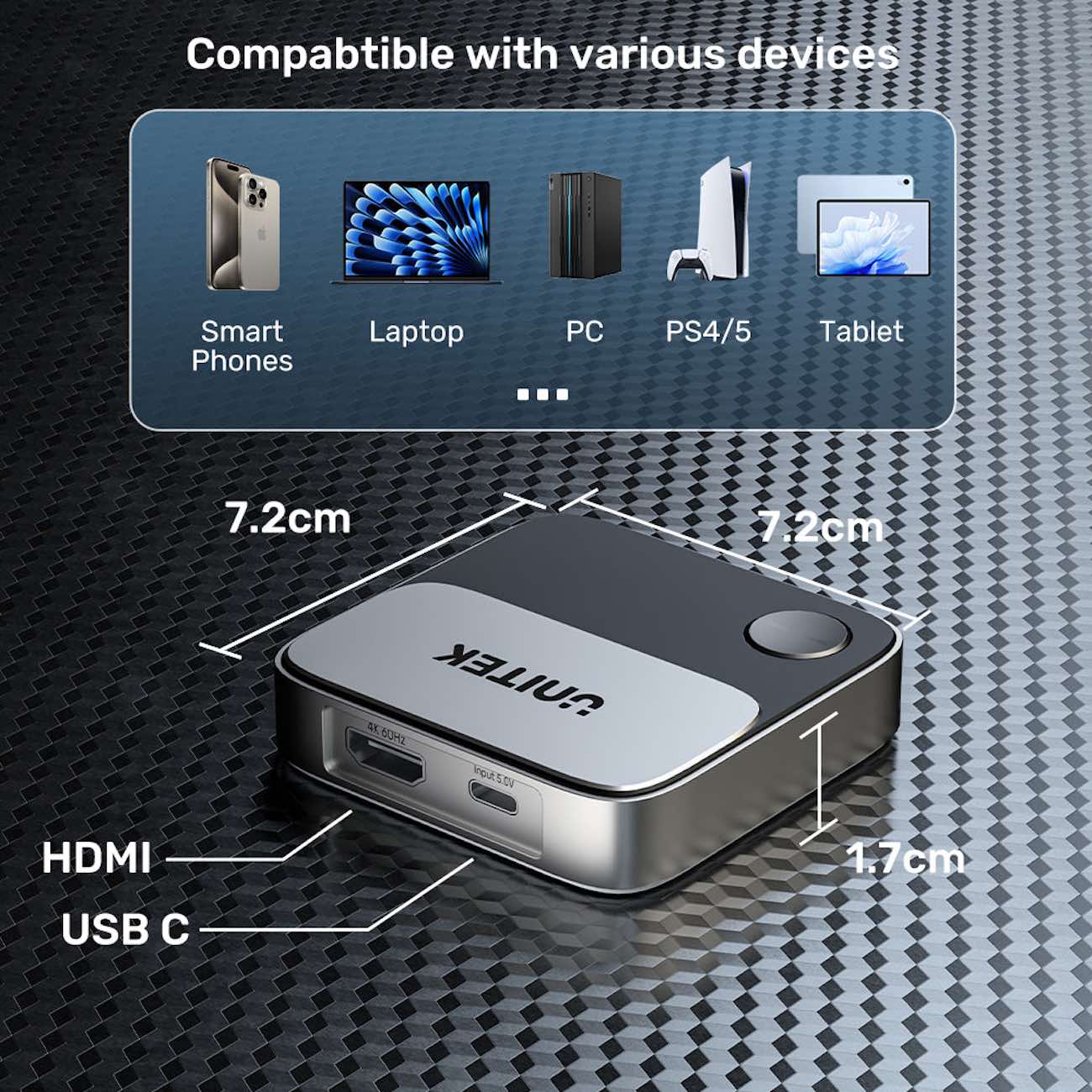 هذا الجهاز العملي والمفيد من يونيتك .. يساعدك على عرض محتوى الجوال أو التابلت على شاشة الجيمنغ .. التلفزيون .. او البروجكتر.