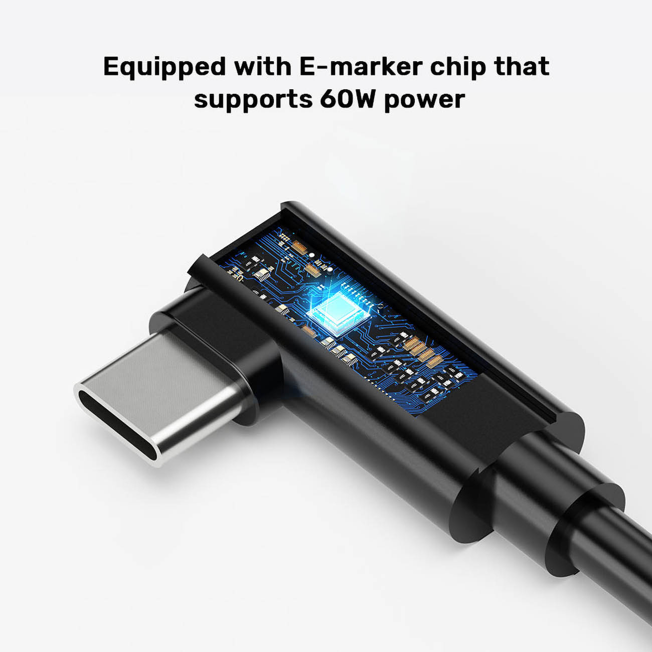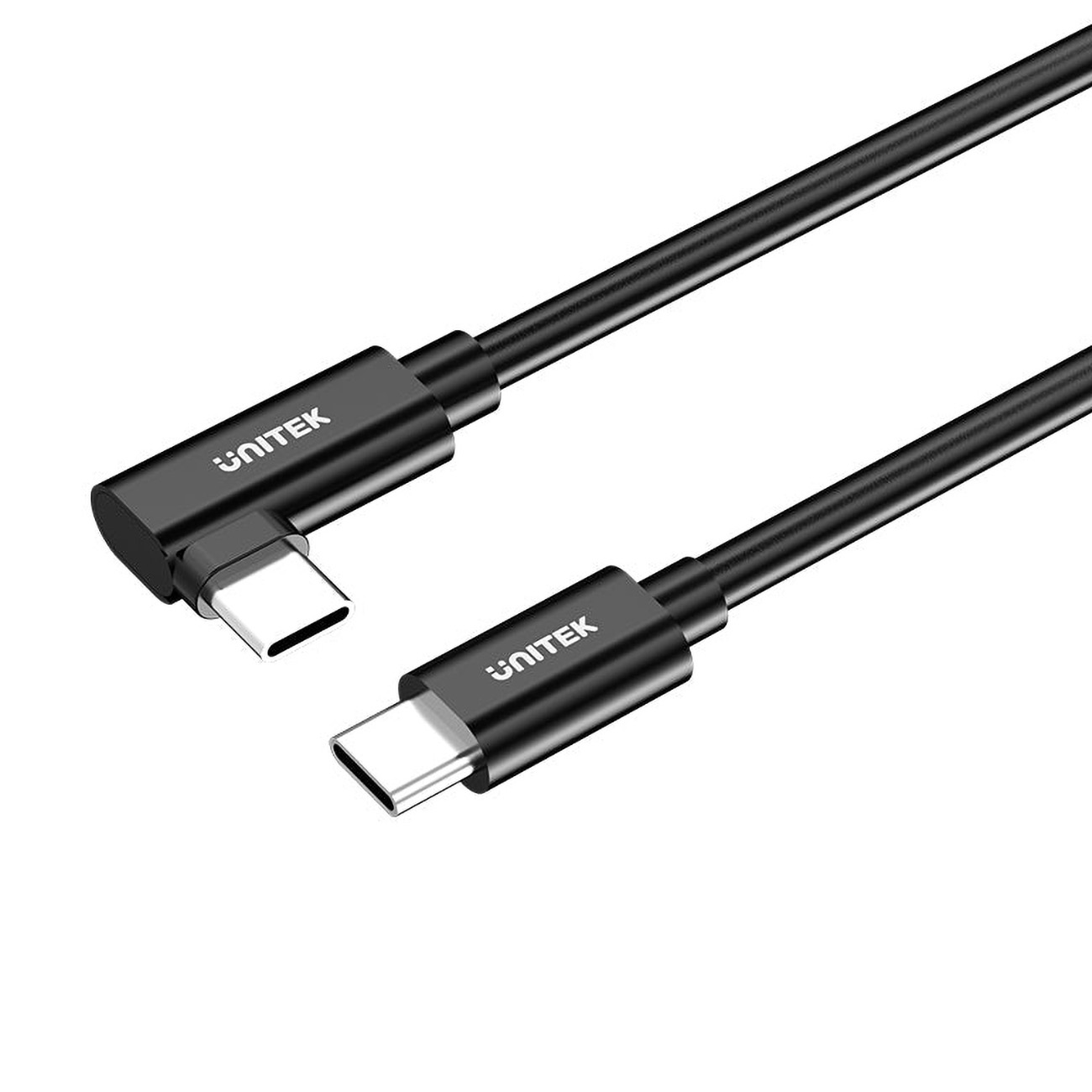 واير Unitek نوع تايب سي الى تايب سي / المدخل الثاني بالطول زاوية 90 درجة / قوة 100 واط / 3 متر