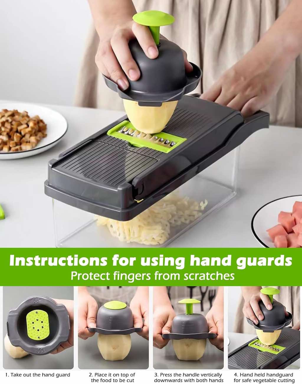 آمنة للاستخدام .. تحتوي على واقي لحماية الاصابع اثناء الاستخدام .. وقاعدة مانعة للانزلاق مع شفرات سهلة التركيب.