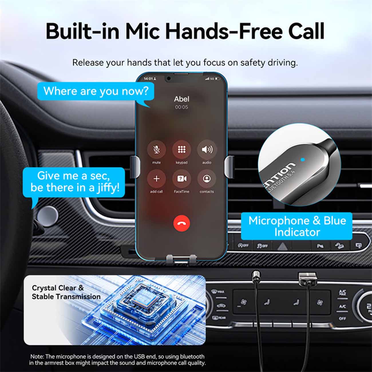 يعمل مع معظم أنظمة الصوت في السيارات والأجهزة اللي فيها مدخل صوت 3.5 مم.