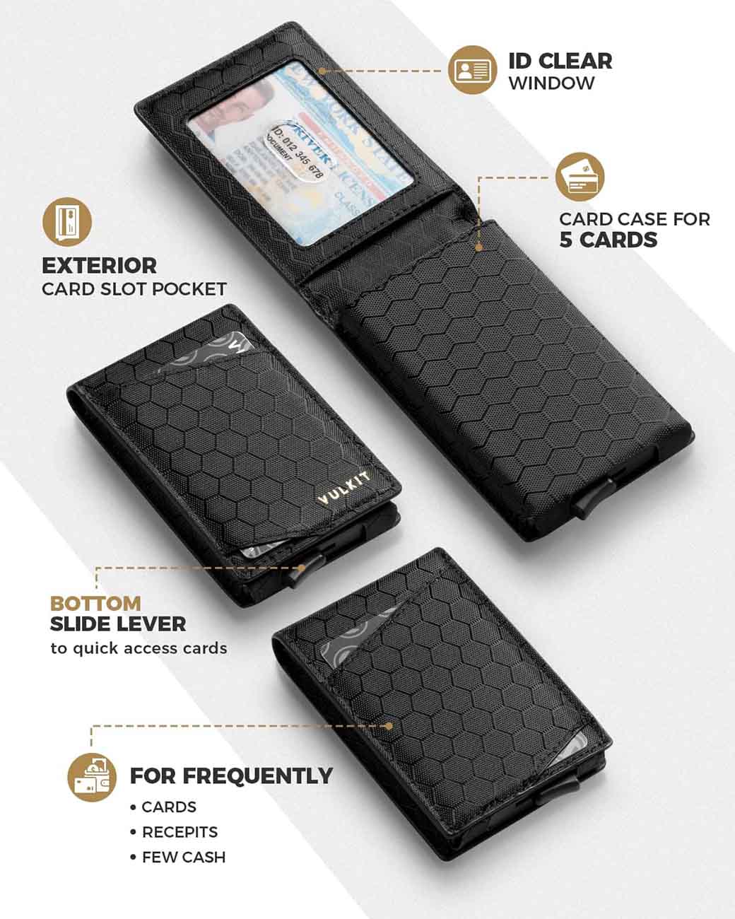 بووك للبطاقات من VULKIT / حماية من RFID / تصميم نحيف / يسع حتى 5 بطاقات / اسود
