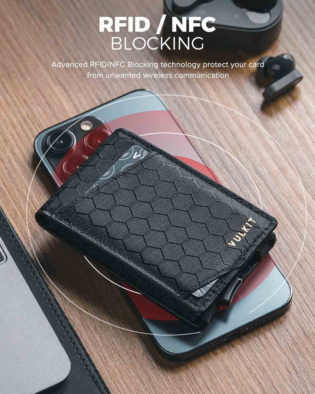 بووك للبطاقات من VULKIT / حماية من RFID / يسع من 1 الى 6 بطاقات / اسود