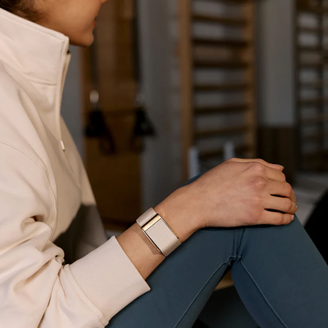 سير SuperKnit Luxe Band يدعم Whoop 5 / لون Dune مع اطار ذهبي