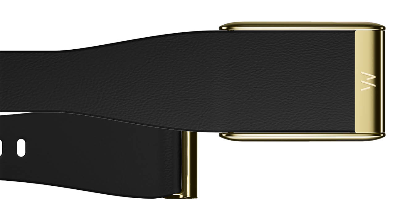 سير LeatherLuxe Tapered Band يدعم Whoop 5 / حجم صغير / اسود مع اطار ذهبي