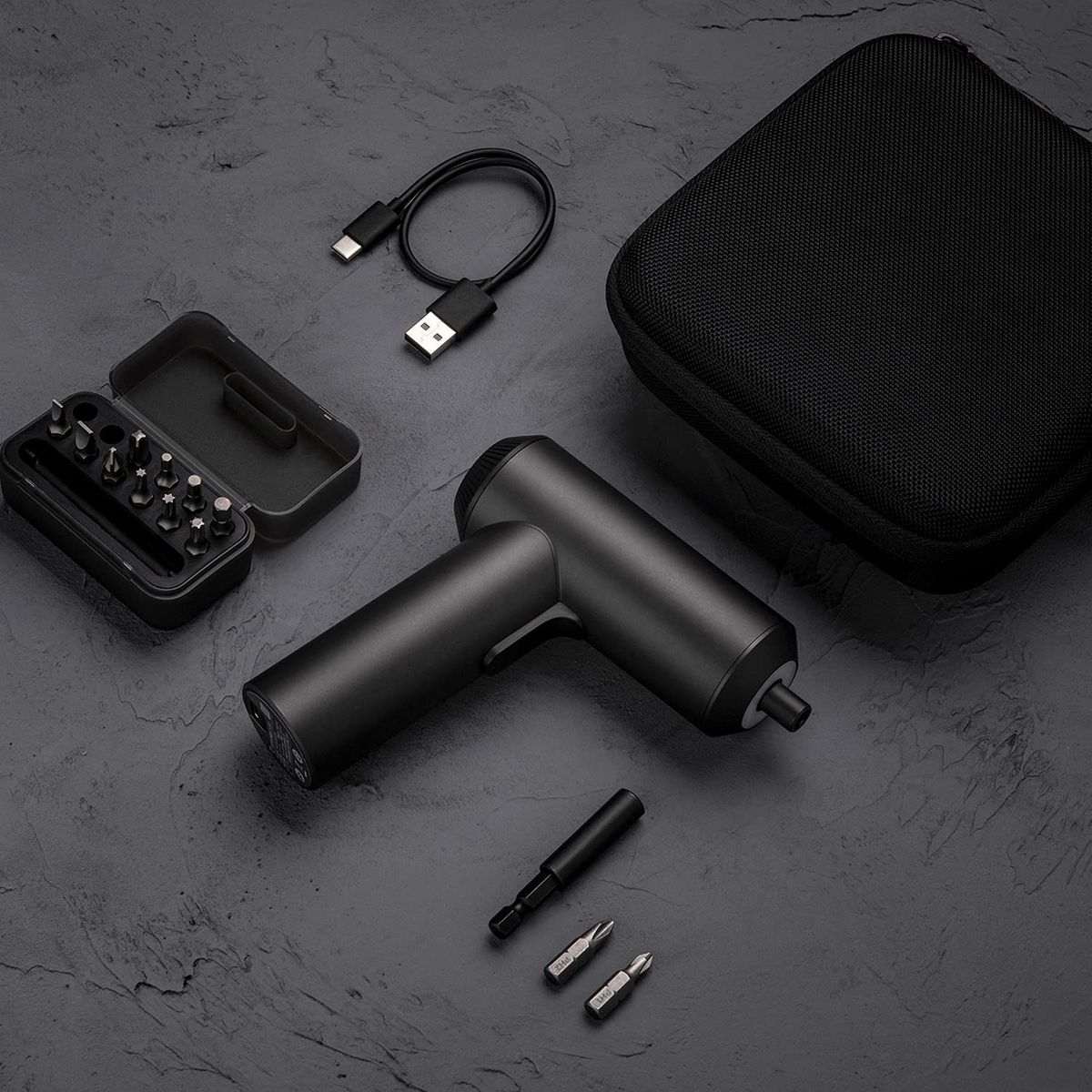 يتوفر مع المنتج شنطة لتخزين المفك والرؤوس