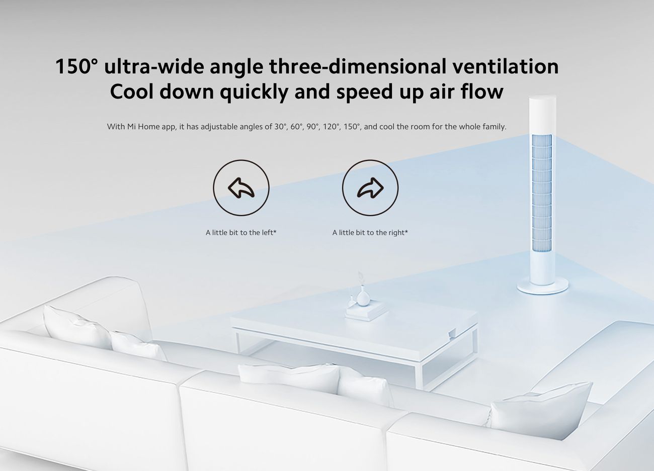 توزع الهواء على زاوية واسعة جداً وهي 150 درجة.