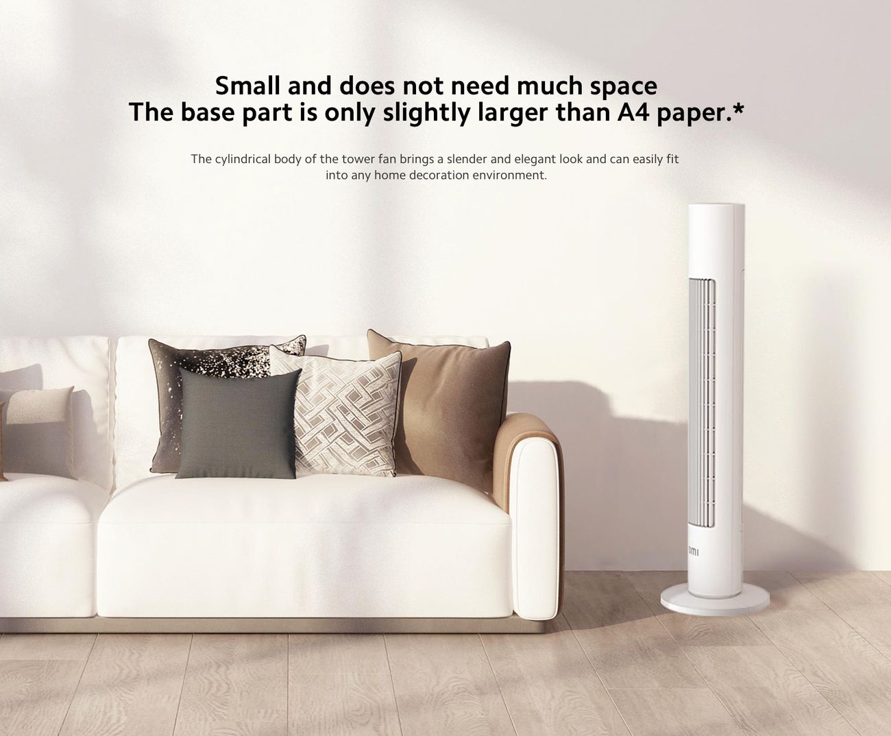 المروحة مصممة لتكون مروحة طولية ، يعني لا تاخذ مساحة كبيرة ابداً.