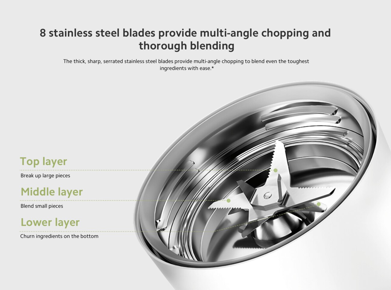 محرك قوي .. قوته 1000 واط مع 8 شفرات من الفولاذ المقاوم للصدأ لخلط سريع ودقيق.