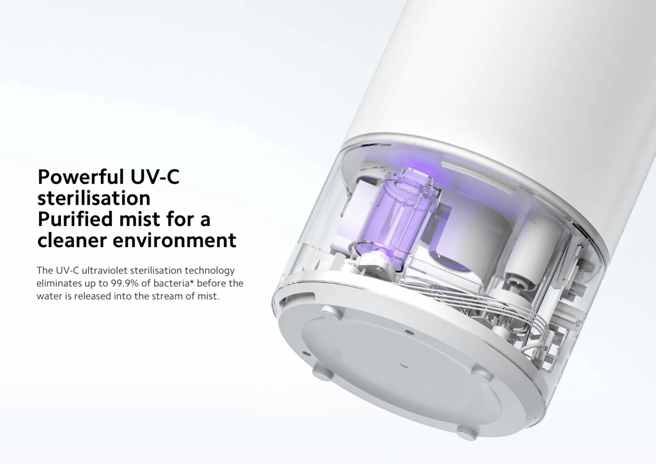 لما تحط له ماي ، يعقم الماء باشعة ال UV للتخلص من البكتيريا والجراثيم اللي في الماء.