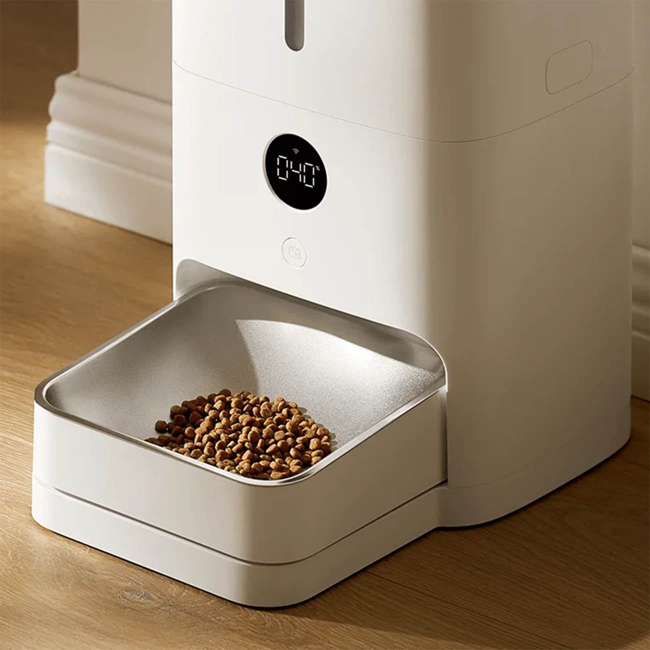 يحتوي على شاشة LED عالية الوضوح .. يعرض لك وزن الاكل وحالة التوزيع.