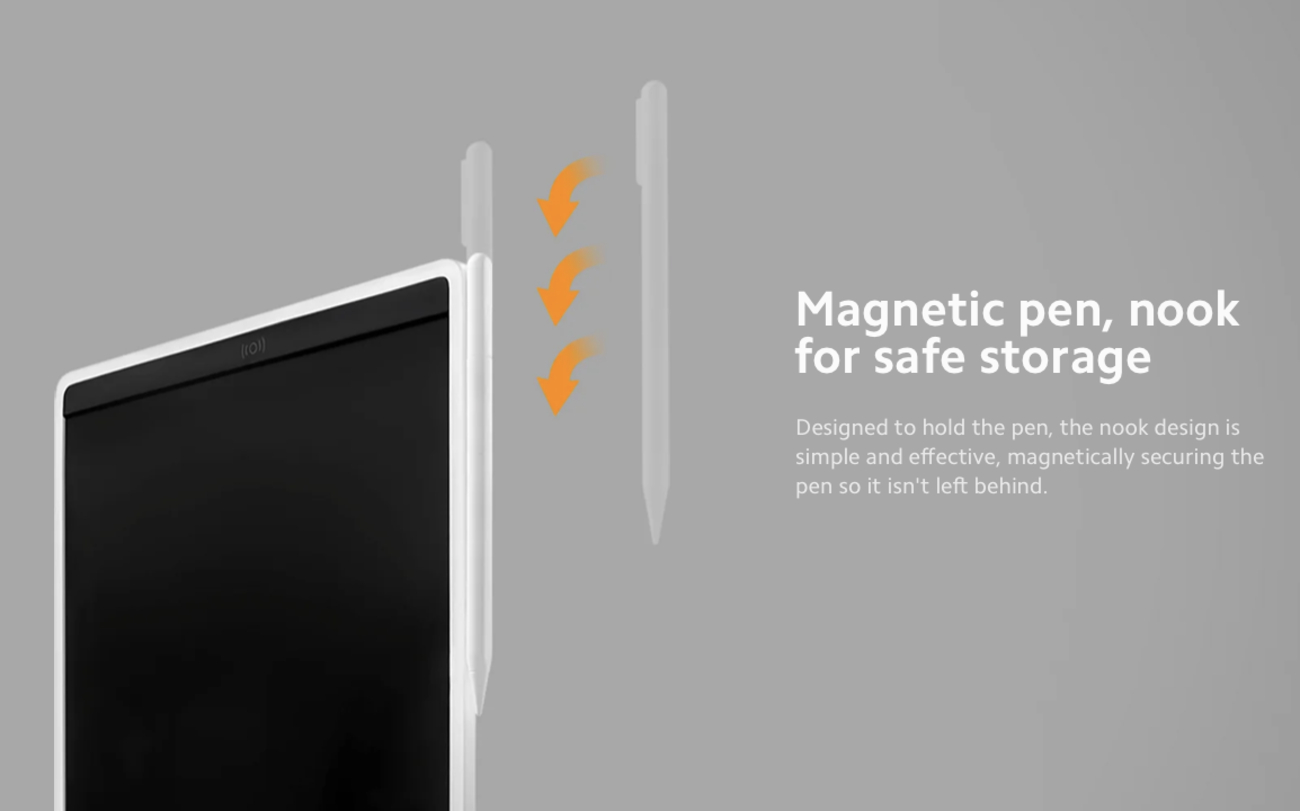 القلم يتصل مغناطيسيا للتخزين الآمن.
