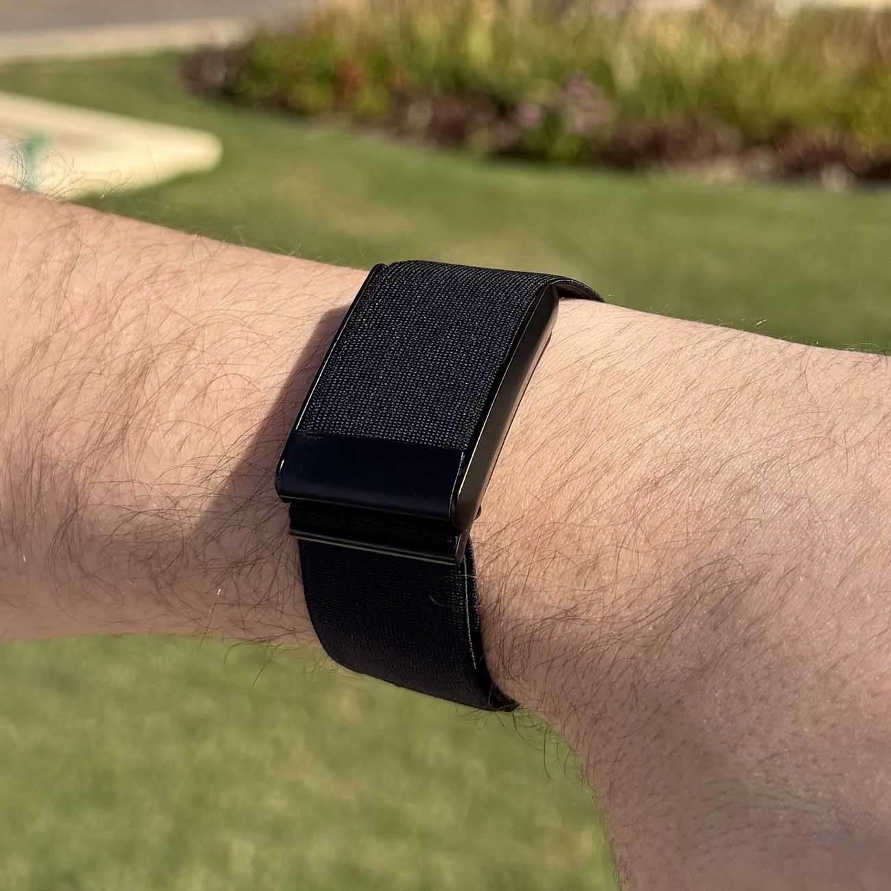 A high-quality and stylish strap from 974Bands that supports the Whoop 4.0 fitness device.