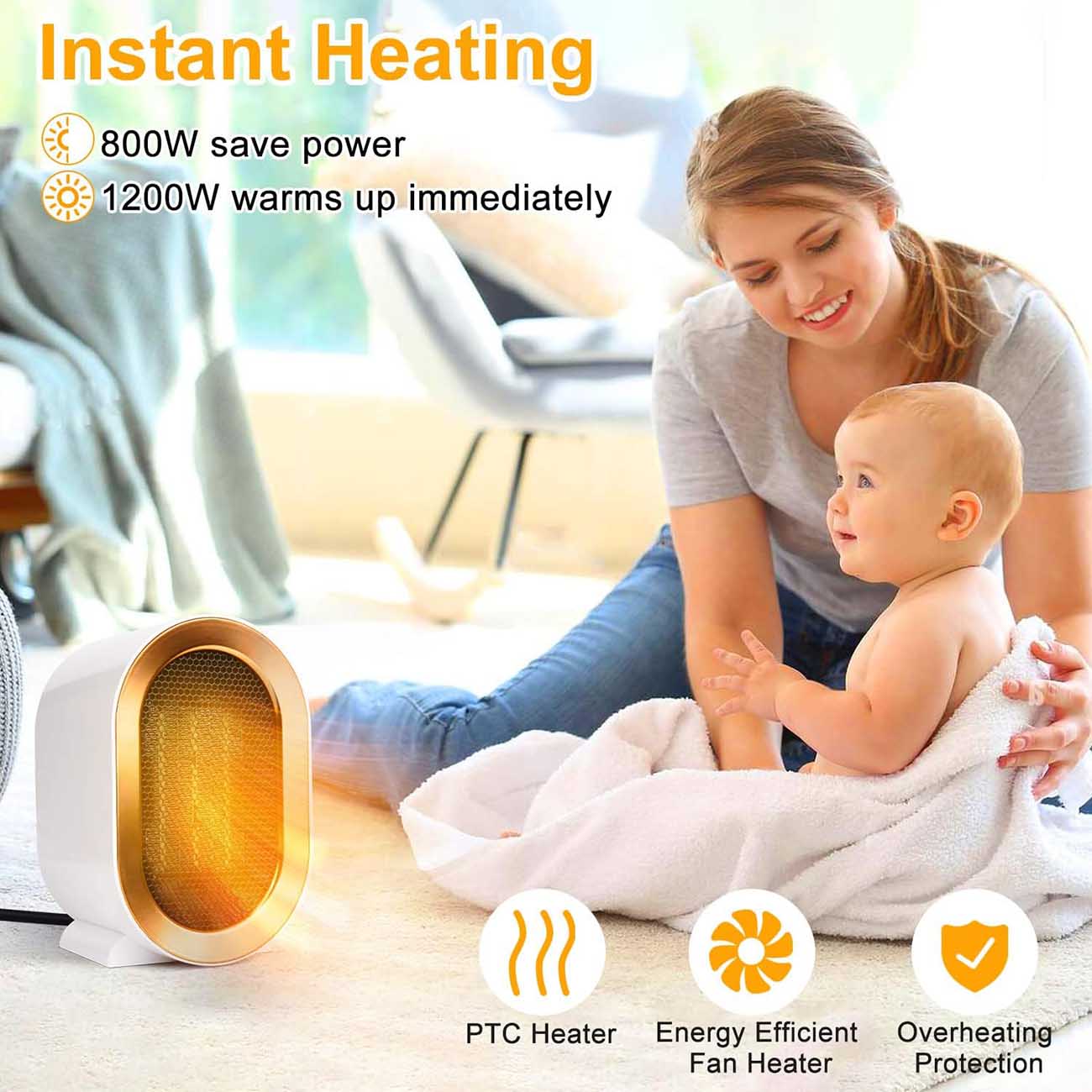 Operates at 1200W power .. providing quick and efficient warmth.