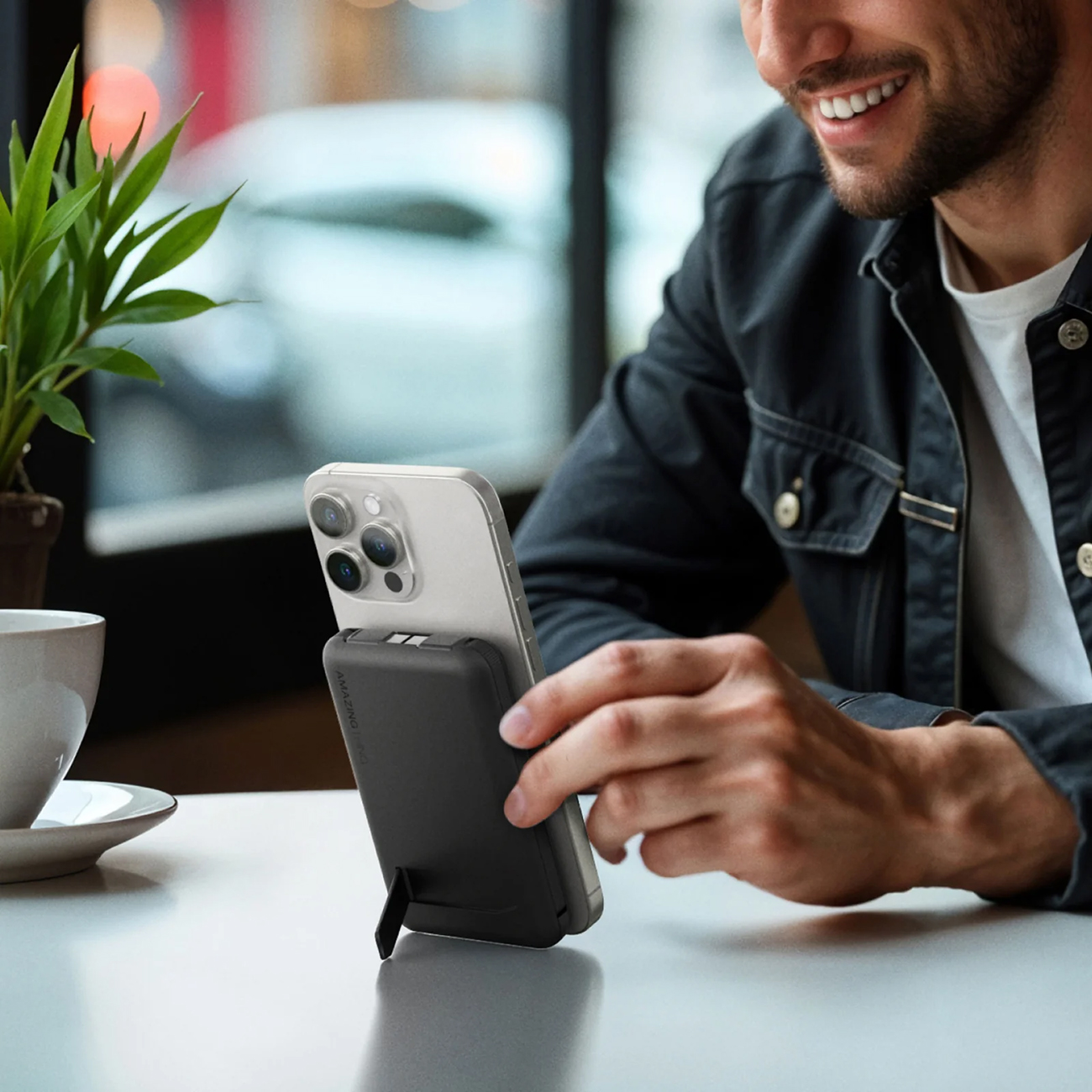 UGreen Uno Magnetic Power Bank / 5000mAh / 20W Power / Built-in Stand / Cute Design / Black