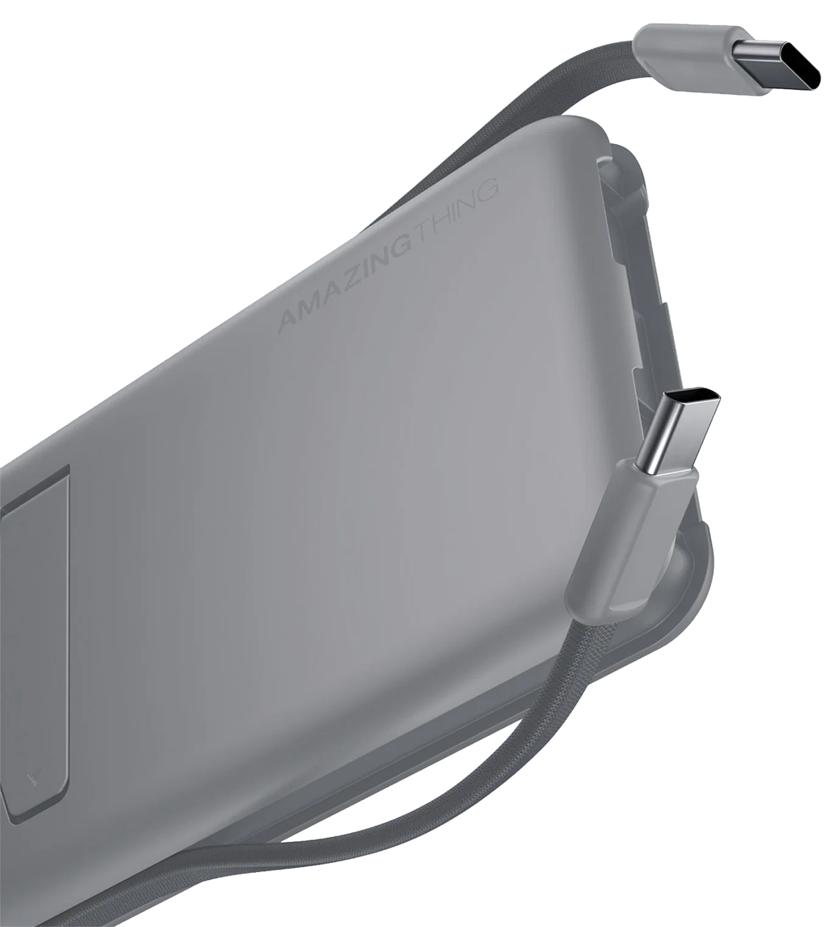 AmazingThing Thunder Pro Power Bank / 10,000mAh / Dual Type-C Cables + Built-in Stand / Black