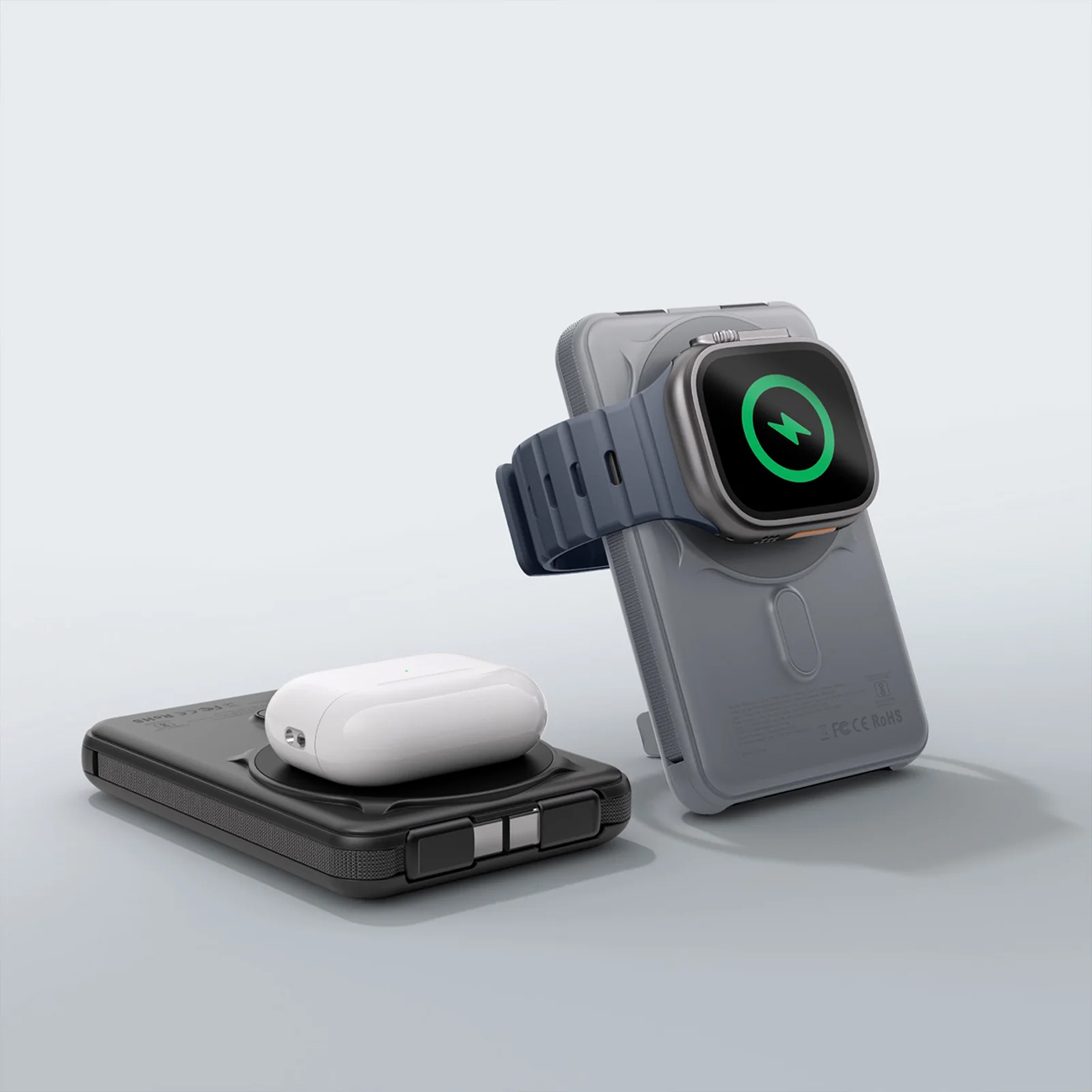 AmazingThing Charger & Power Bank / Charges iPhone + AirPods + Watch / 2 Built-in Type-C Cables