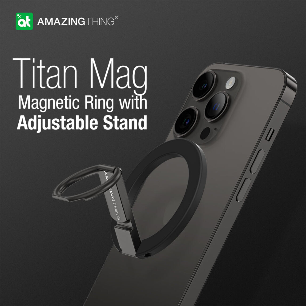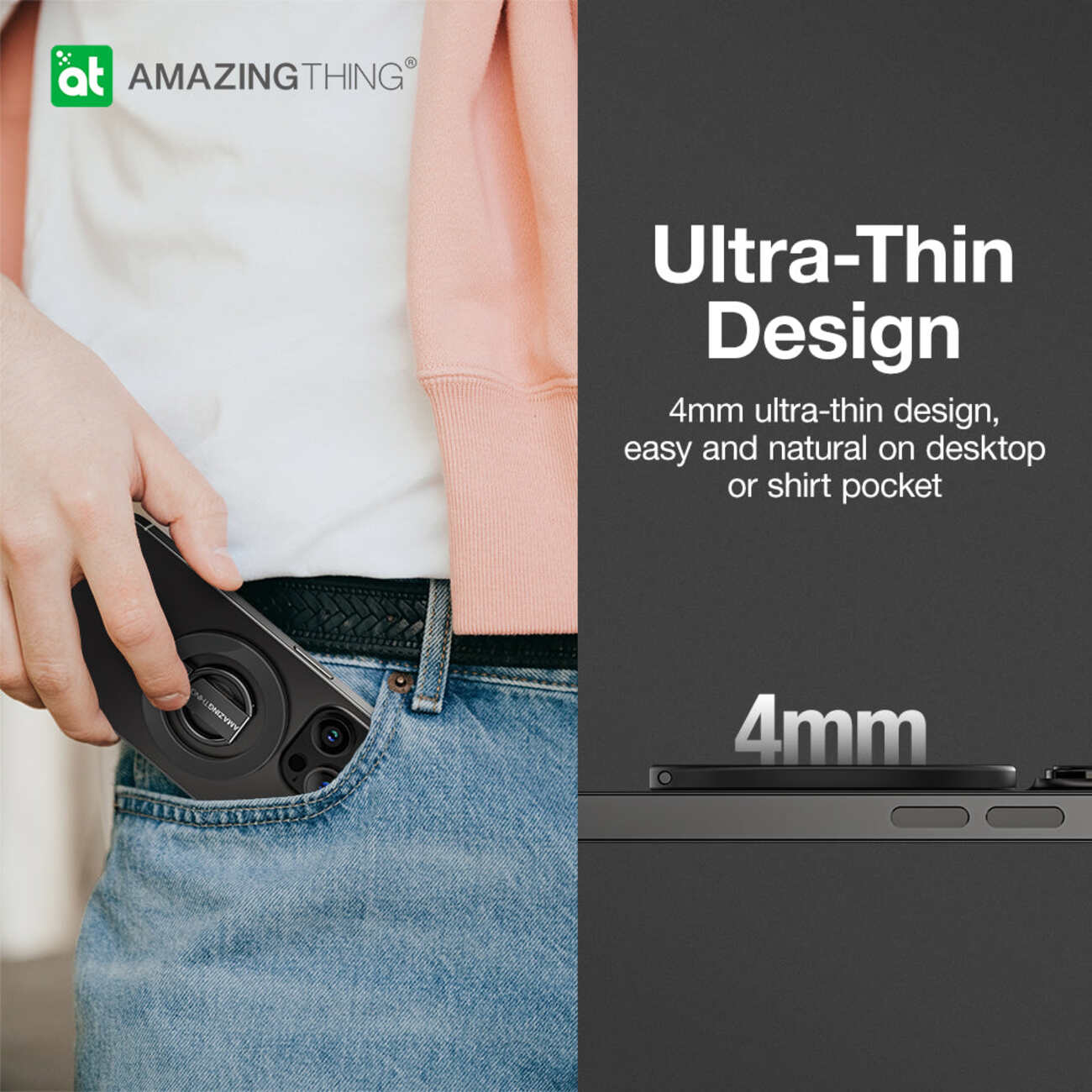 Handgrip and stand for iPhone with easy and quick magnetic attachment.
