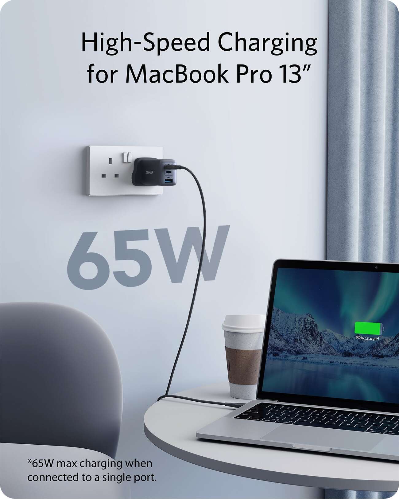 High-Speed Charging for Notebooks: Connect to either 65W USB-C port to charge flagship notebooks including MacBook Air 2020, MacBook Pro 13”, Dell XPS 13 9380, ThinkPad X390, and more at high speed.