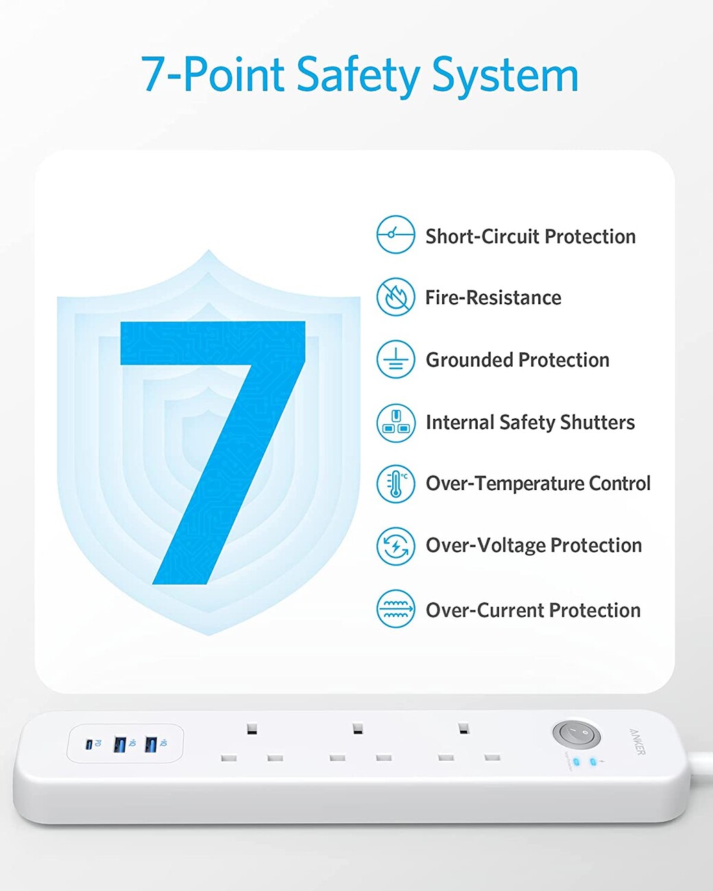Child-friendly: AC outlet has internal safety shutters to prevent foreign object insertion.