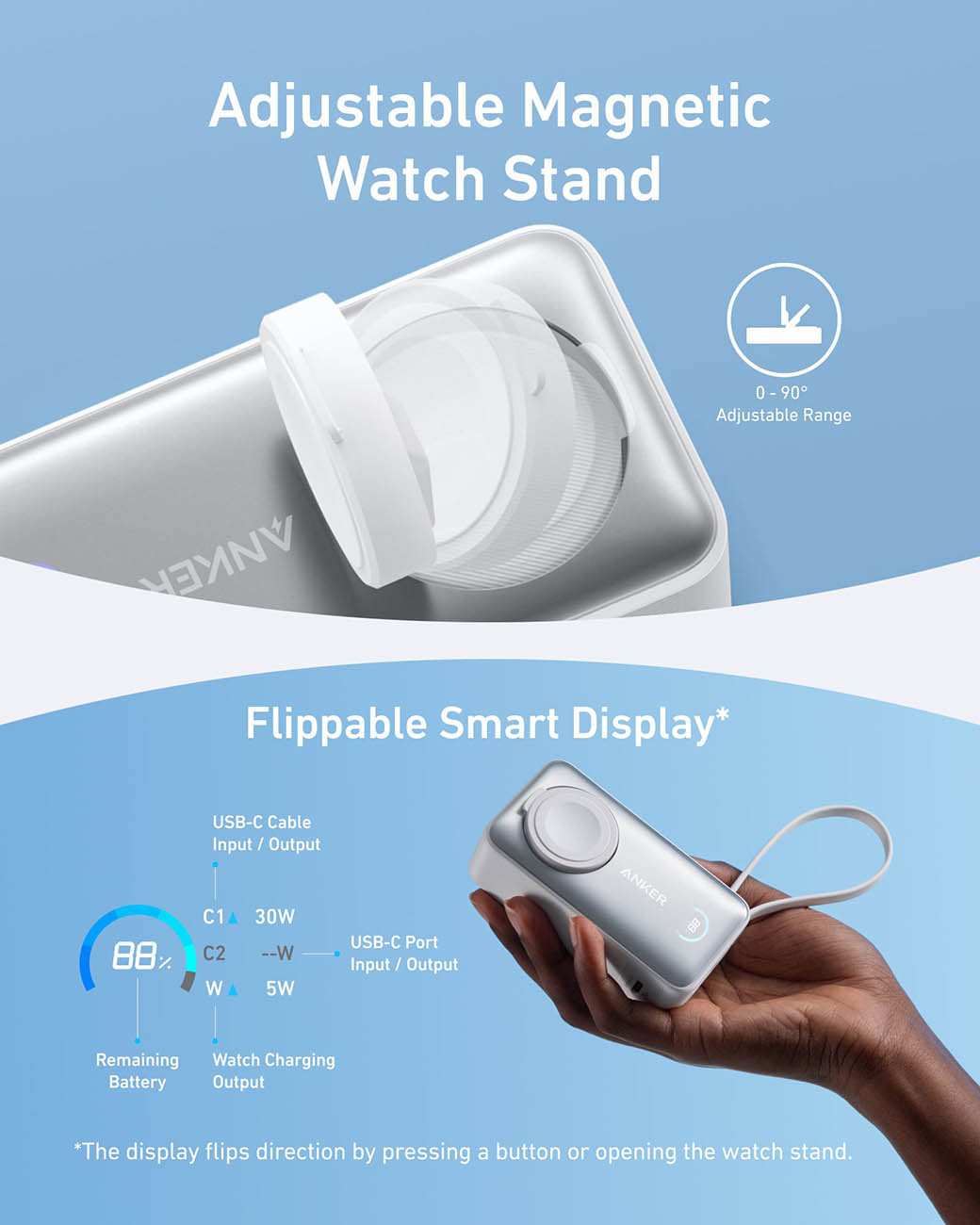 Anker MagGo Power Bank / 10000 mAh / With Apple Watch Charger / Built-in Type-C Cable / 35W