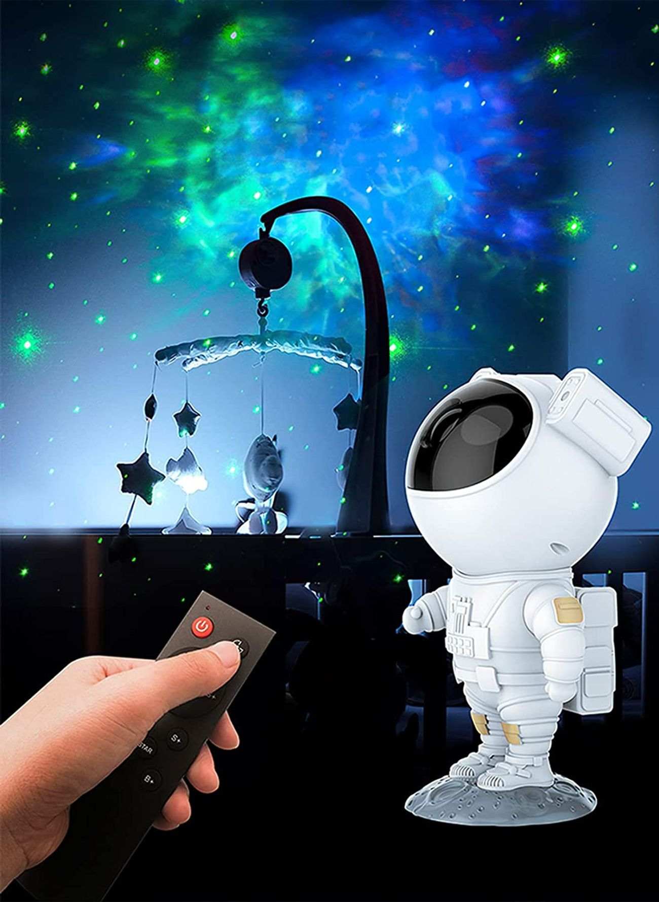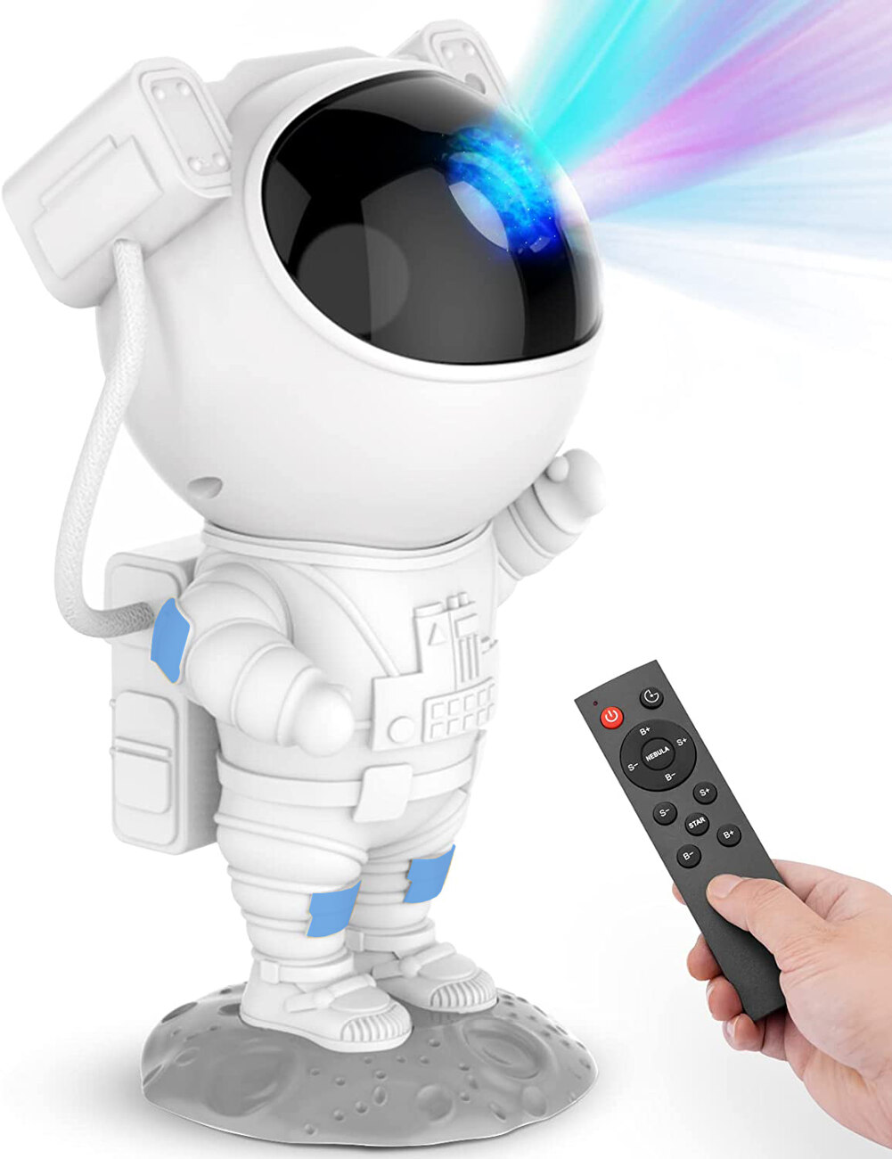 Remote Control & Timer / Astronaut Star Projector, with remote control, can control the light mode on/off. Adjust the brightness of each light mode. Two timer functions: 45/90 minutes, auto power off, easy access to these settings without waking up.