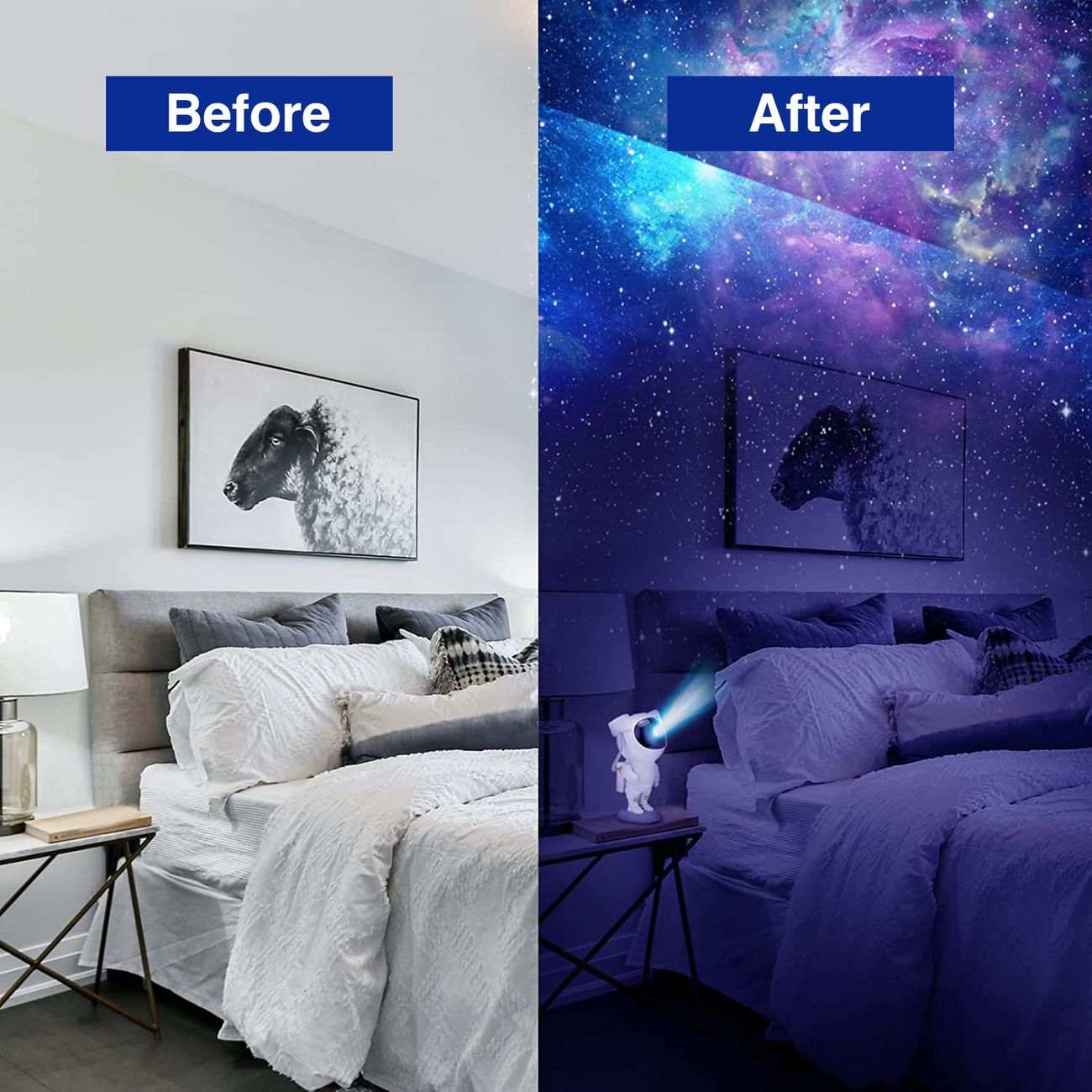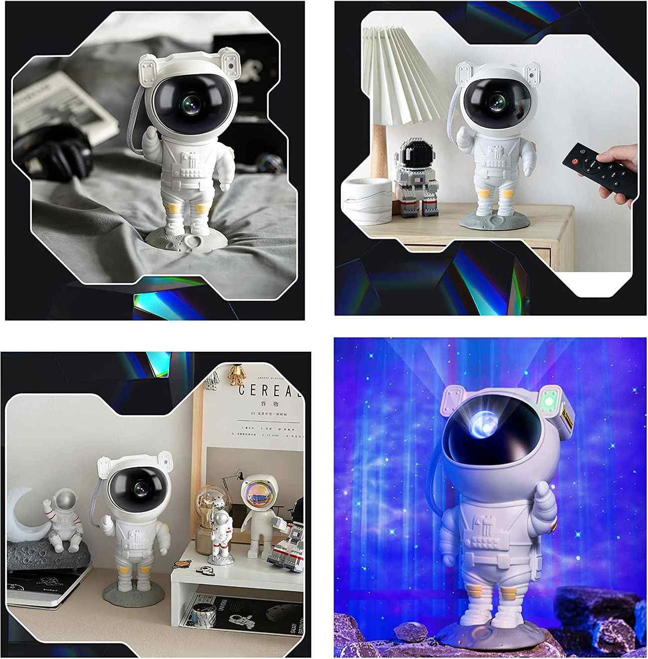 Unique Astronaut Design / High-quality and lovely version of the astronaut-shaped projection lamp, high-quality materials and meticulous design, the high-definition lens makes the projection effect clear and realistic, using the lunar table document base, the placement is firmer and smoother. Exquisite appearance quality assurance, very suitable as decoration.
