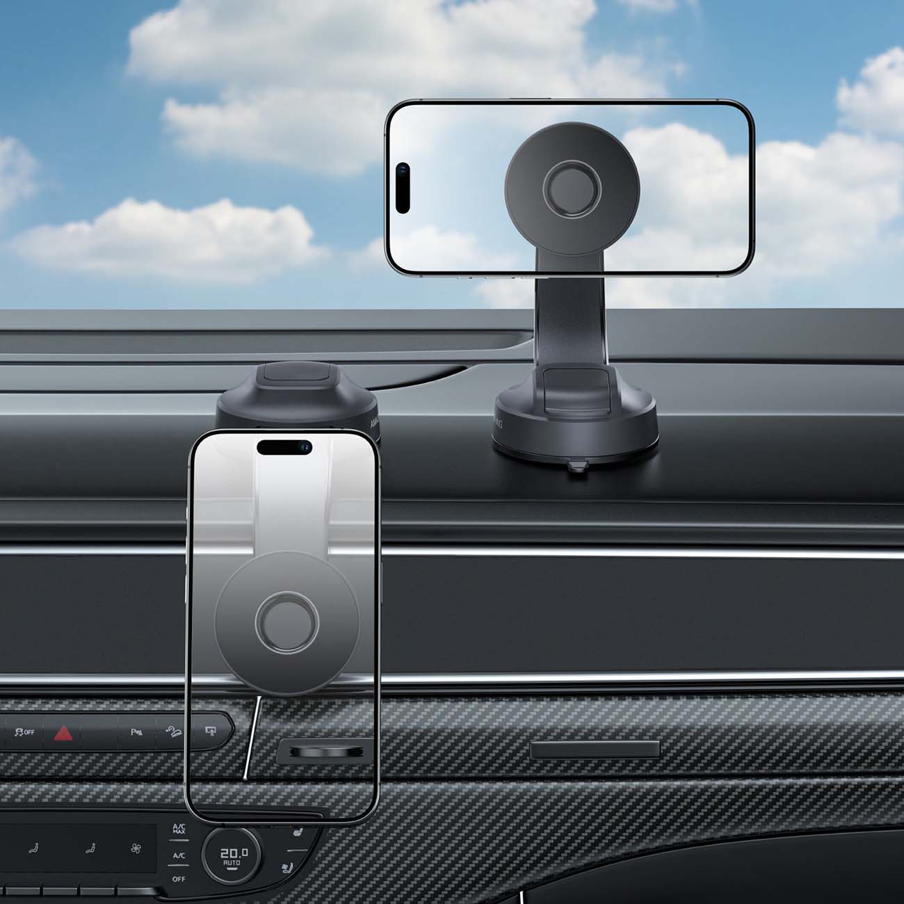 Moxedo Magnetic Phone Stand / Mounts on Car Dashboard / Foldable + Rotatable / Supports MagSafe