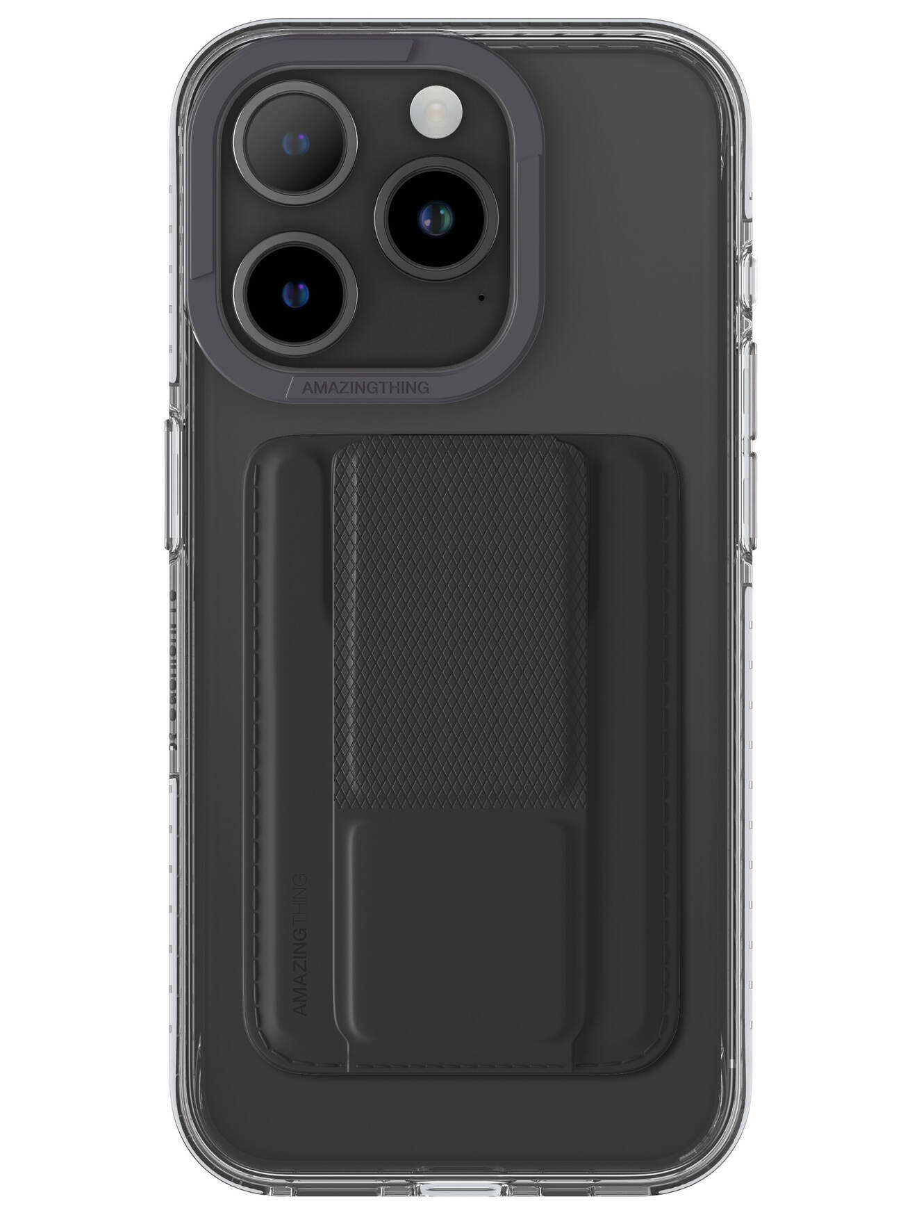 It includes a built-in stand and grip for convenient phone usage.