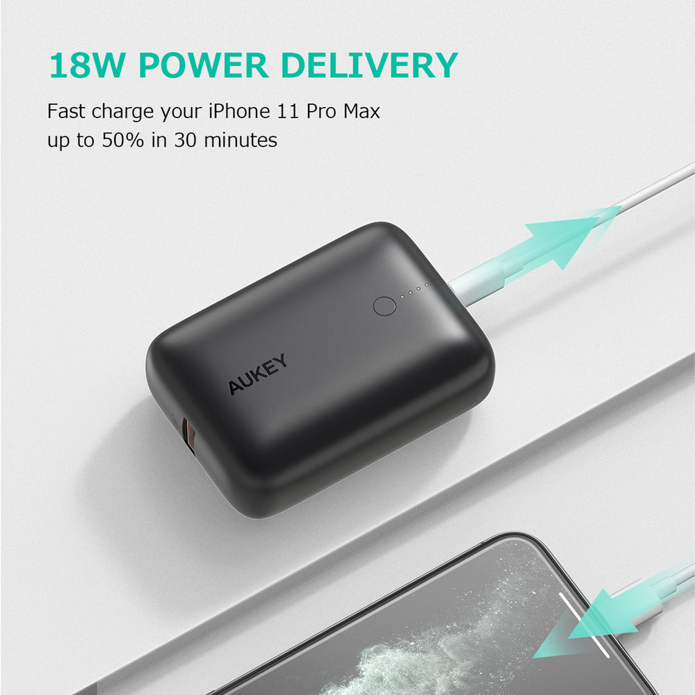 - Specifications Model: Aukey PB-N83 Battery Capacity: 10000mAh Technology: USB Power Delivery 3.0, Qualcomm Quick Charge 3.0 USB-C Inpu/Output: (Power Delivery 3.0) DC 5V 2.4A / 9V 2A / 12V 1.5A USB-A Output: (Quick Charge 3.0) DC 5V 2.4A / 9V 2A / 12V 1.5A Dimension: 2.7 x 5.6 x 8cm Weight: 174g Max Power Inputt: 18W Max Power Output: 18W