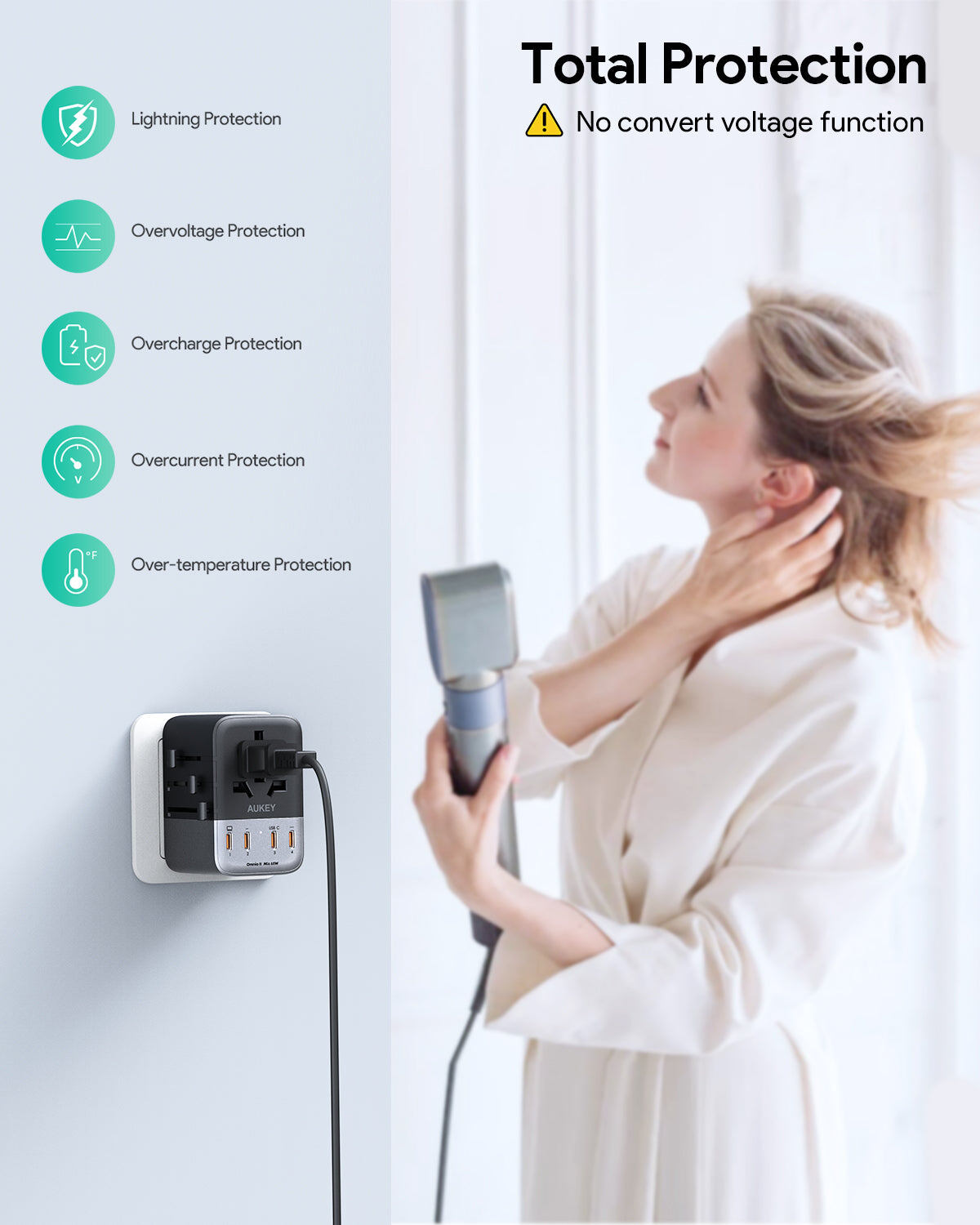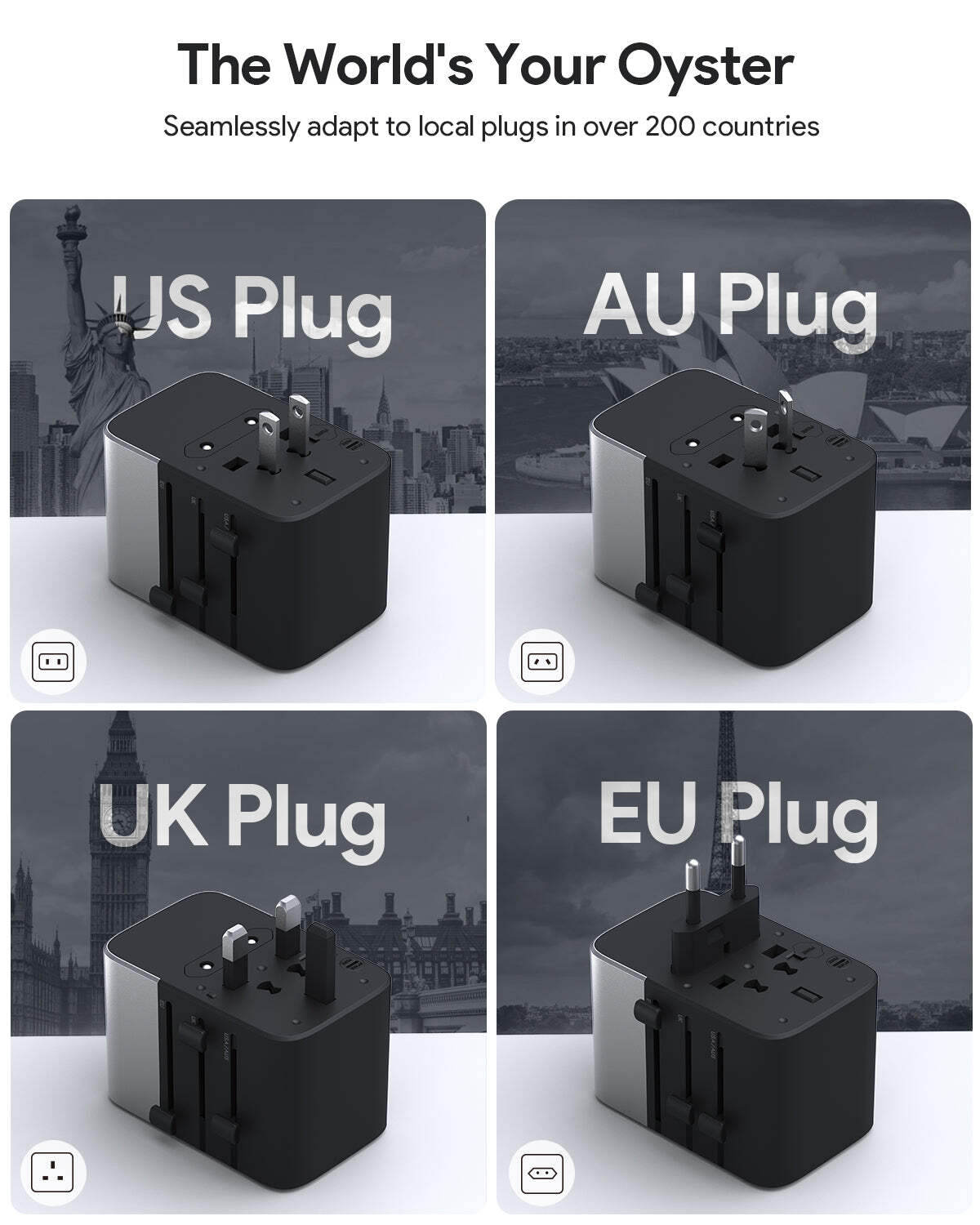 Compatible with all types of power plugs from different countries .. making it perfect for travel wherever you go.
