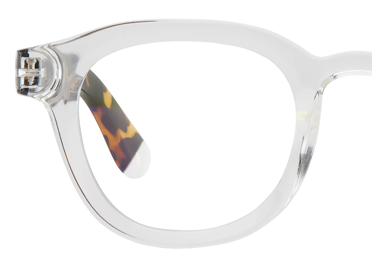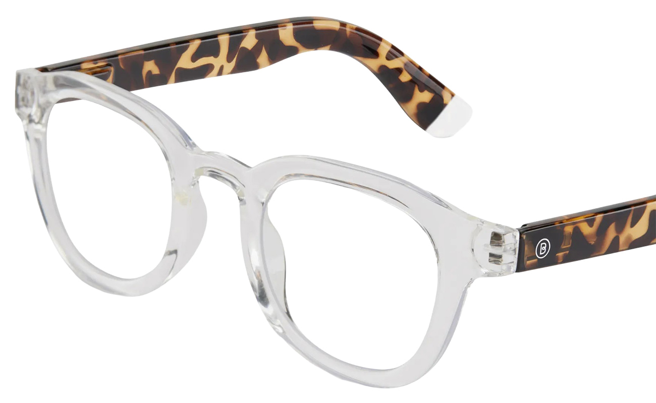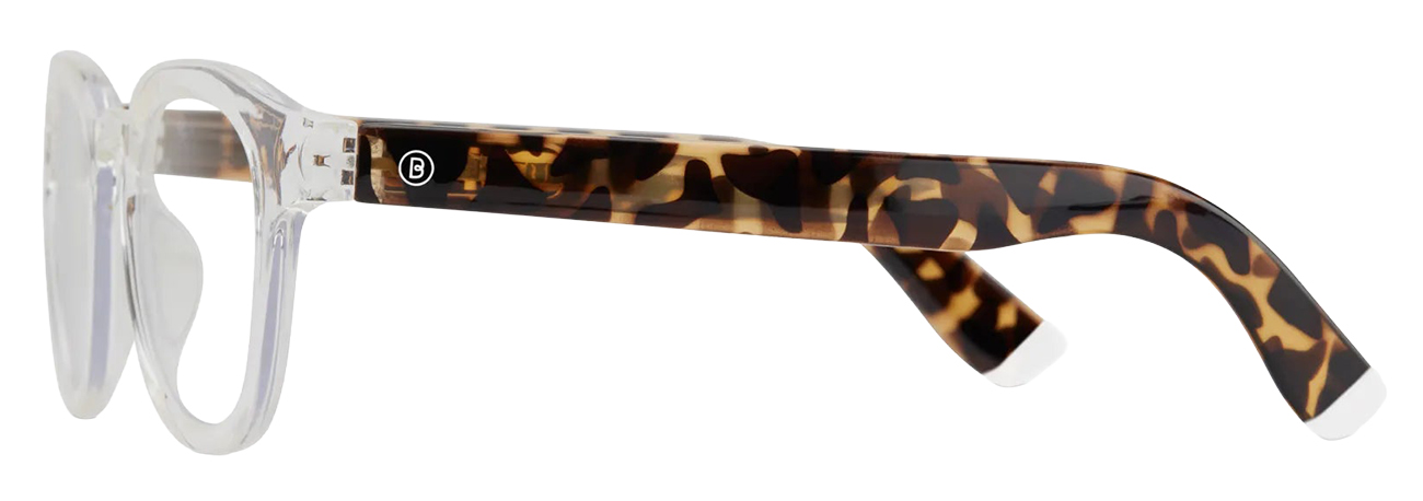 Uses blue light blocking lenses to protect eyes from harmful screen rays.