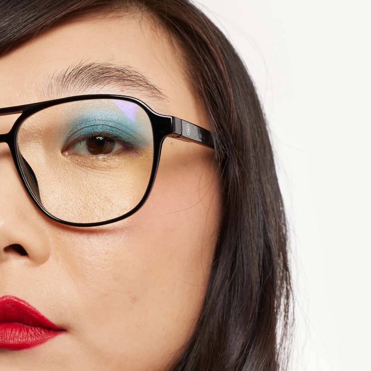 Uses blue light blocking lenses to protect eyes from harmful screen rays.